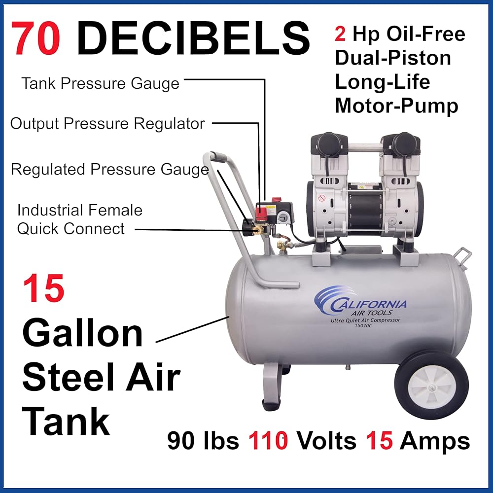 تم تصميم ضاغط الهواء كاليفورنيا إير تولز 15020CH فائق الهدوء والخالي من الزيوت مع خرطوم هواء هجين 50 بوصة ليكون واحدًا من أهدأ ضواغط الهواء بقوة 2.0 حصان في الصناعة حيث يحتوي على 70 ديسيبل فقط من الصوت. يعمل المحرك القوي 2.0 حصان (SP-9421) بسرعة 1680 دورة في الدقيقة فقط مما يخلق ضوضاء أقل وتآكلًا أقل. تم تصميم سلسلة SP من محركات ضاغط الهواء فائقة الهدوء لزيادة دورة العمل والسماح بأوقات تشغيل متواصلة أطول. تم تصميم نظام المضخة ذات المكبس المزدوج الخالي من الزيت لتحقيق الأداء العالي والمتانة. يحتوي ضاغط الهواء CAT-15020C على مضخة مكبس مزدوج خالية من الزيت مصممة لتكون لها دورة حياة قبل التآكل تصل إلى 3000 ساعة إضافية مقارنة بضواغط الهواء الأخرى المماثلة مع دورات حياة تبلغ 100 ساعة أو أقل. تسمح المضخة الخالية من الزيت بالاستخدام في مجموعة متنوعة من درجات الحرارة (البدء البارد) والتضاريس غير المستوية (لا يوجد زيت في المضخة). تسمح ميزة Easy Start Valve ببدء تشغيل أسهل باستخدام مضخمات بدء أقل. يطلق صمام التشغيل السهل كمية صغيرة من الهواء من المضخة عند بدء التشغيل لإنتاج حالة عدم تحميل مما يسمح للمحرك بالدوران بحرية. يتطلب بدء التشغيل بدون تحميل أمبيرات أقل لبدء التشغيل بشكل أسهل في درجات الحرارة الباردة. خزان الهواء الفولاذي الكبير بسعة 15 جالون مع مجموعة العجلات يجعل من السهل جدًا التنقل في موقع العمل أو المتجر أو المرآب. مصمم للأشخاص الذين يبحثون عن الطاقة وتدفق الهواء وخدمة وصيانة أقل مع ضوضاء أقل بنسبة 30% على الأقل!