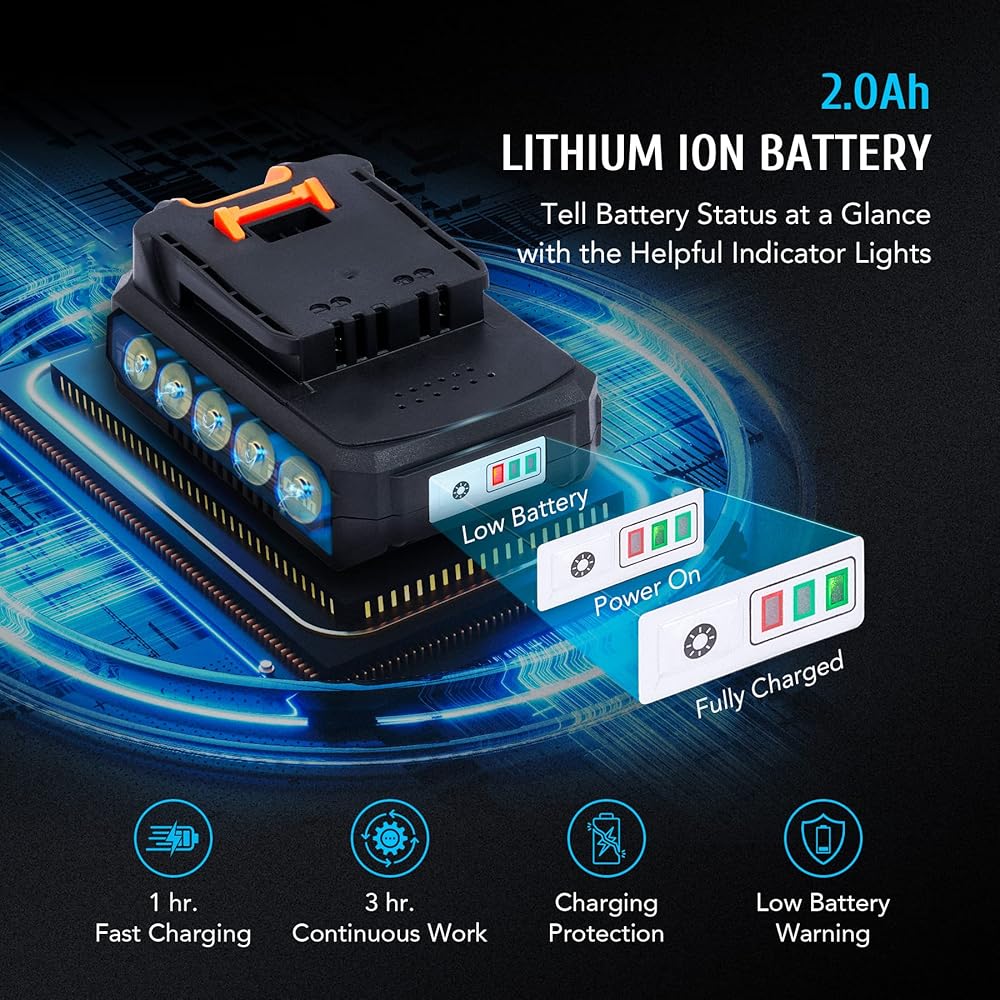 Battery Type: 18V/2000mAh Rechargeable Lithium Ion