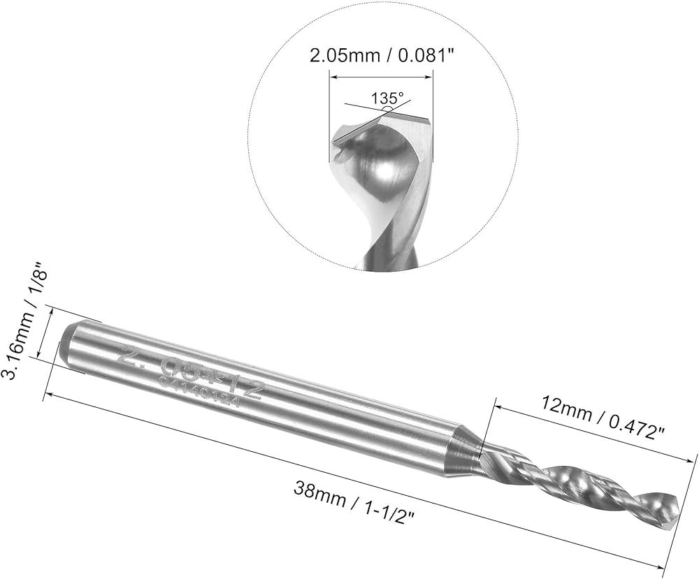 المواصفات: قطر حافة القطع (CED): 2.4 مم / 0.094 بوصة؛ قطر الساق: 3.16 مم / 1/8 بوصة؛ الطول الإجمالي: 38 مم / 1-1/2 بوصة؛ نقطة الزاوية: 135 درجة.