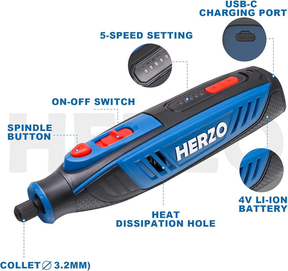 هيرزو أداة دوارة 4 فولت هي هدية مثالية لمحبي الأعمال اليدوية والأشخاص المبدعين