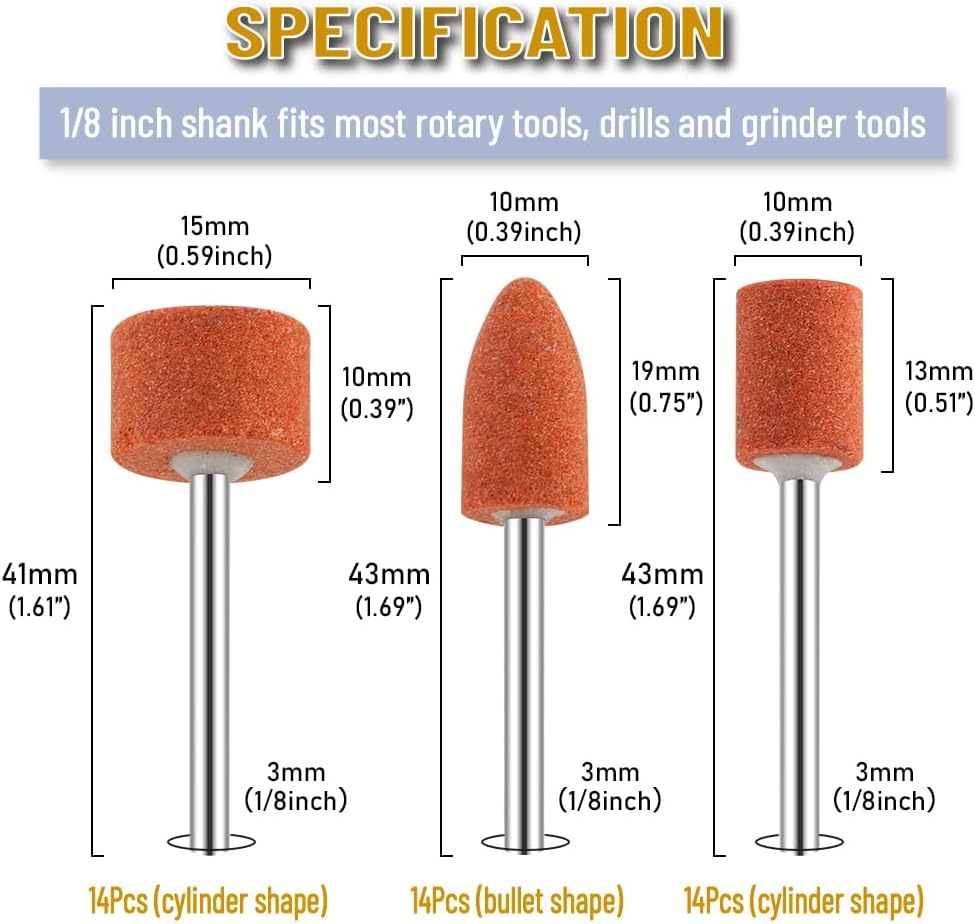 3.Universal Shank - All diamond grinding burrs with 1/8" shank compatible with Dremel, GOXAWEE and most rotary tools and die grinders.