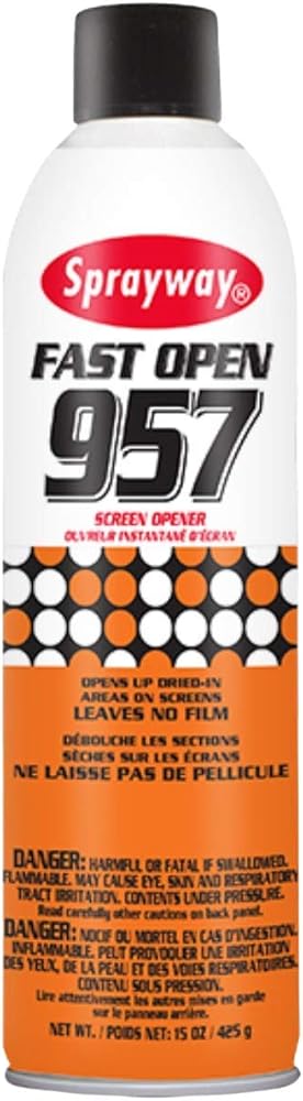 منتج مريح وسهل الاستخدام مصمم لفتح المناطق الجافة على الشاشات. استخدم FAST OPEN 957 على فترات منتظمة للمساعدة في منع الانسداد وتأخير العمل. ما عليك سوى رش طبقة رقيقة جدًا على المنطقة أو المناطق الجافة. اثنين أو ثلاثة من تمريرات الممسحة ستفتح الشبكة بالكامل.