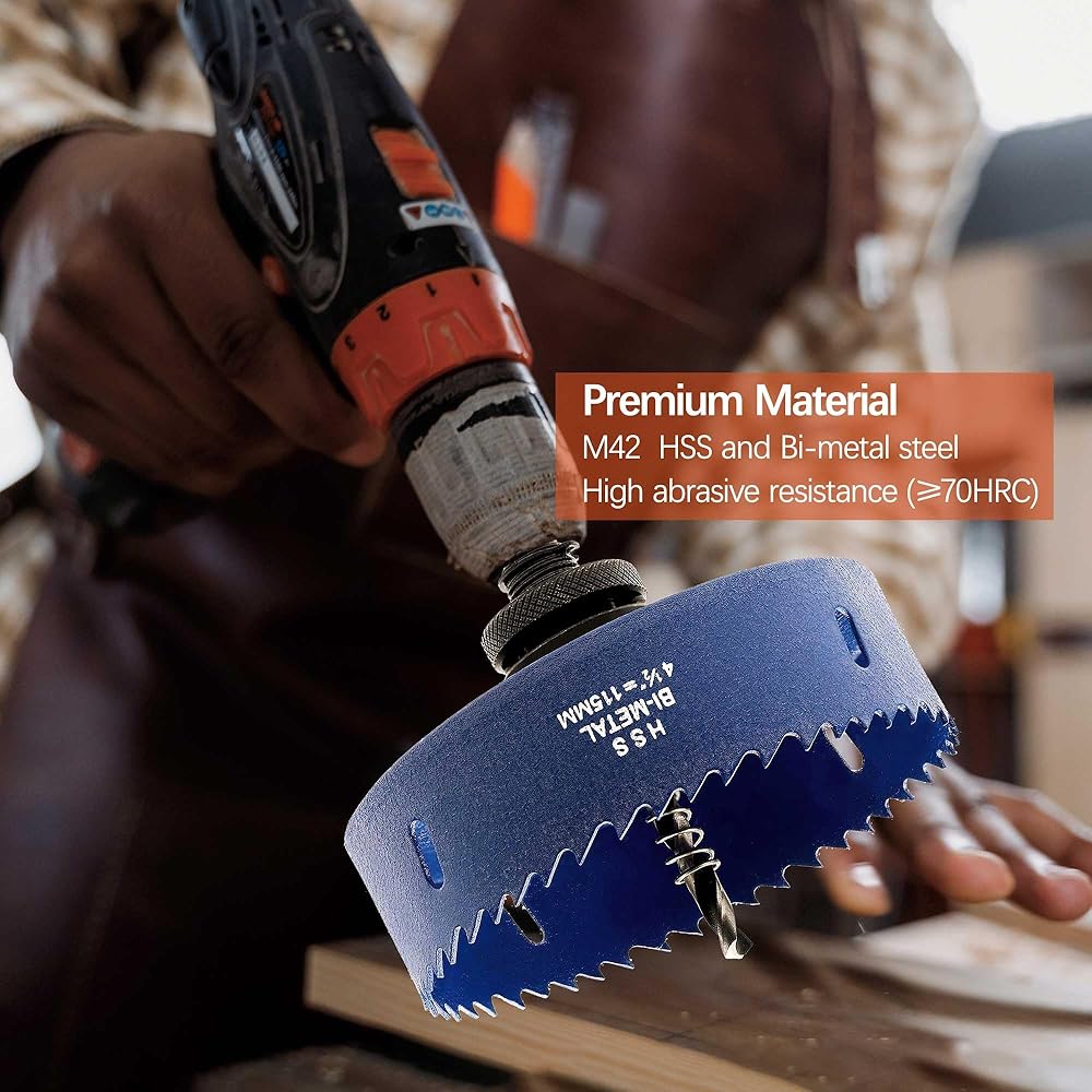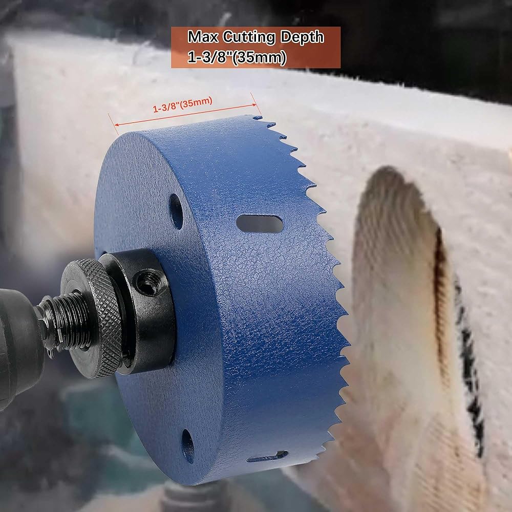 【أعلى جودة】منشار الثقب ثنائي المعدن هذا مصنوع من الفولاذ عالي السرعة M42، مما يجعله يتمتع بصلابة أعلى (≥HRC70) وصلابة أعلى من منشار الثقب القياسي، وأداء قطع أفضل، حتى يتمكن من قطع الصفائح المعدنية وبلاط السقف و ألواح الجبس بسلاسة. وعمق القطع الأقصى يصل إلى 1-3/8 بوصة (35 مم)؛