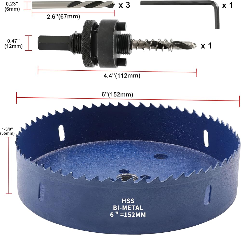 【العبوة الكاملة】تتضمن قاطع منشار ثقب 1 × 6 بوصة، و1 × مغزل أربور، و4 × رؤوس مثقاب تجريبية بديلة و1 × مفتاح سداسي. مجموعة المنشار المثالية يمكن أن تلبي جميع احتياجاتك اليومية التي تحتاجها بنفسك.