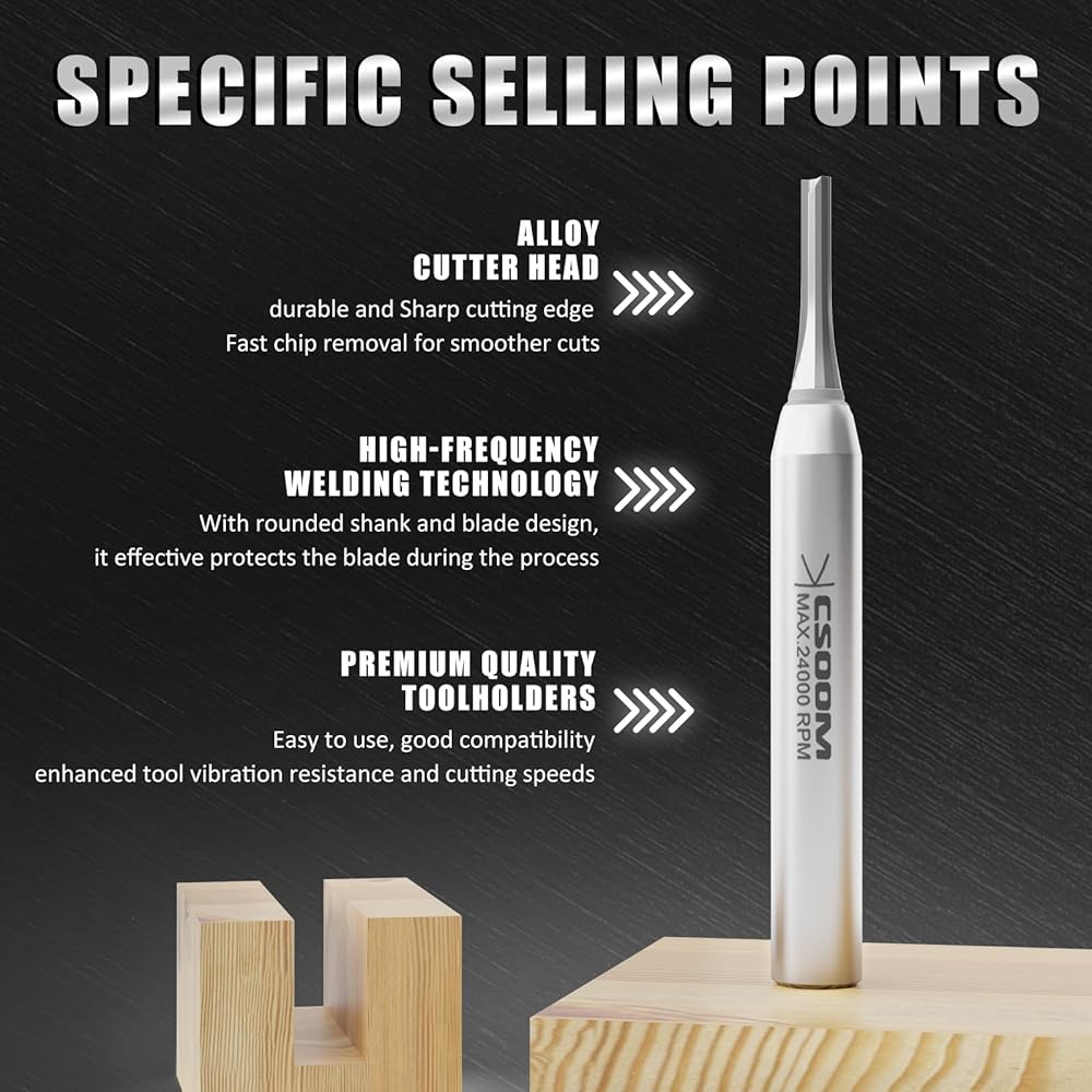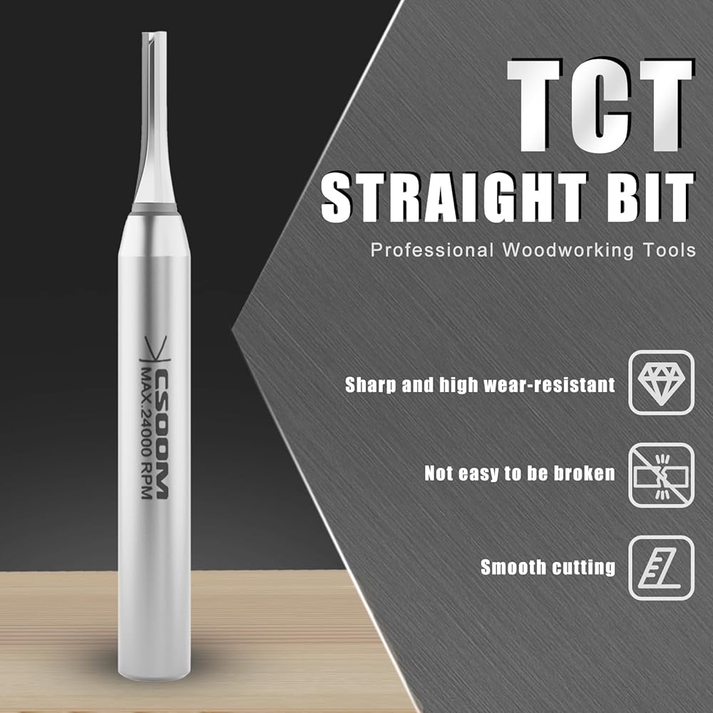 CSOOM TCT القطع الصناعية مستقيمة جهاز التوجيه , 3/16 "قطره ، 1/4 بوصة سرق , قاطع كربيد CNC مستقيم ، أدوات النجارة للأخدود ، القطع ، إلخ.