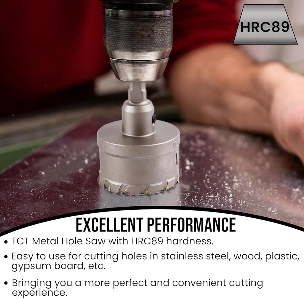 Anfrere TCT 3/8 بوصة منشار ثقب للمعادن الصلبة، منشار قطع كربيد TCT شديد التحمل مع لقمة ثقب مركزية وساق SDS ومفتاح ربط على شكل حرف L للفولاذ المقاوم للصدأ والحديد والألومنيوم والسبائك والبلاستيك