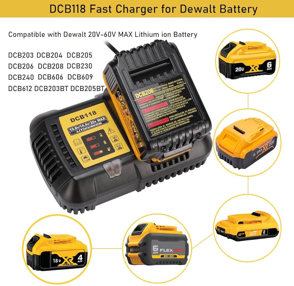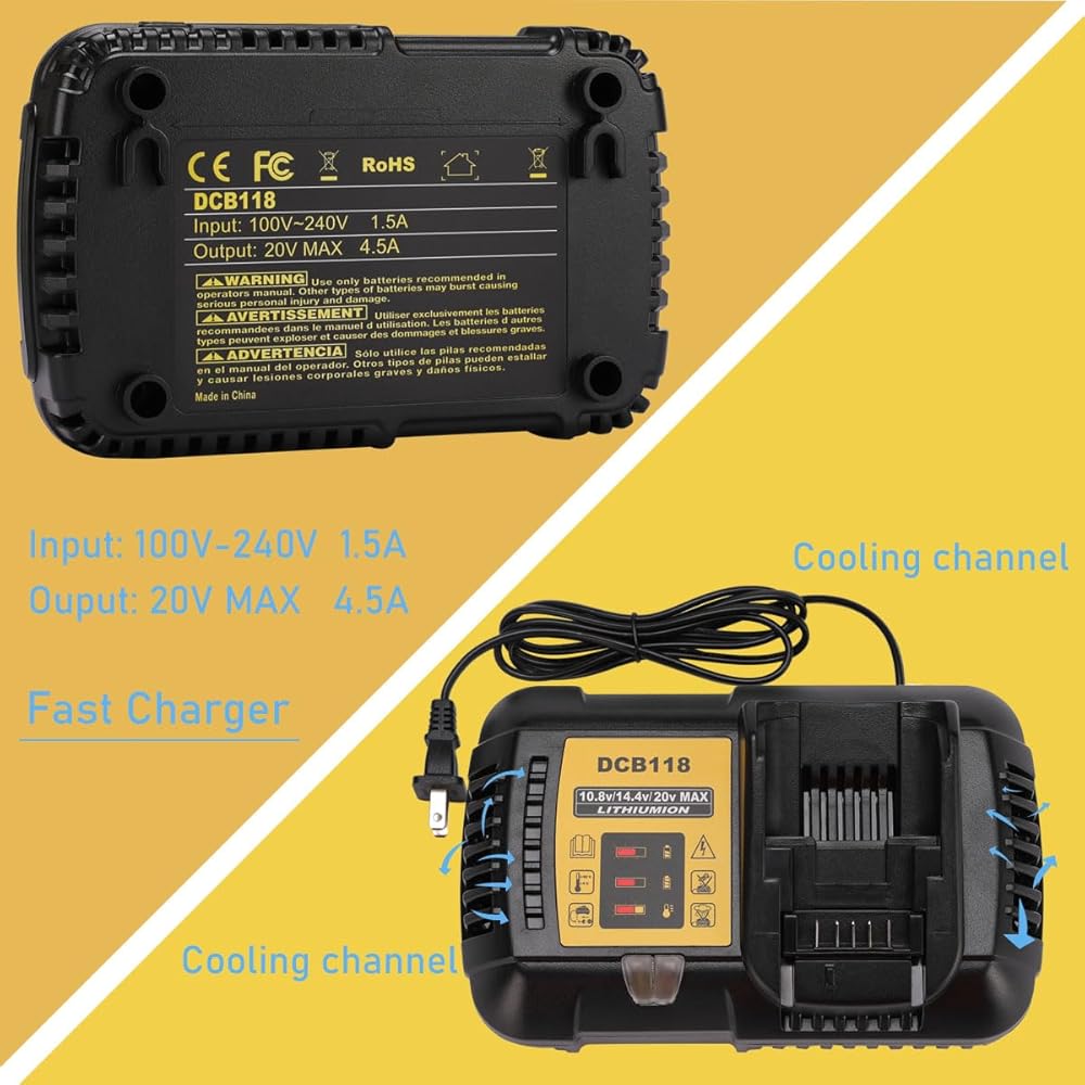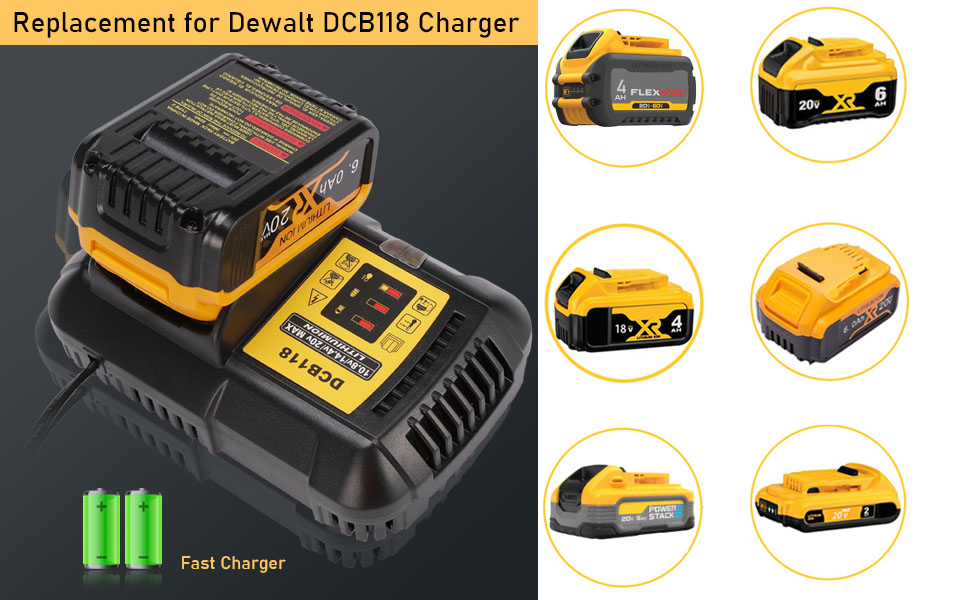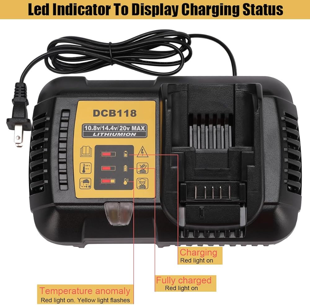 قيمة رائعة - متوافقة بنسبة 100% مع جميع بطاريات dewalt 20V/60V MAX. ويمكن أيضًا شحن بطاريات 10.8V 14.4V.