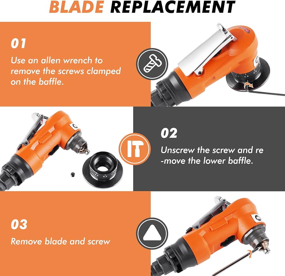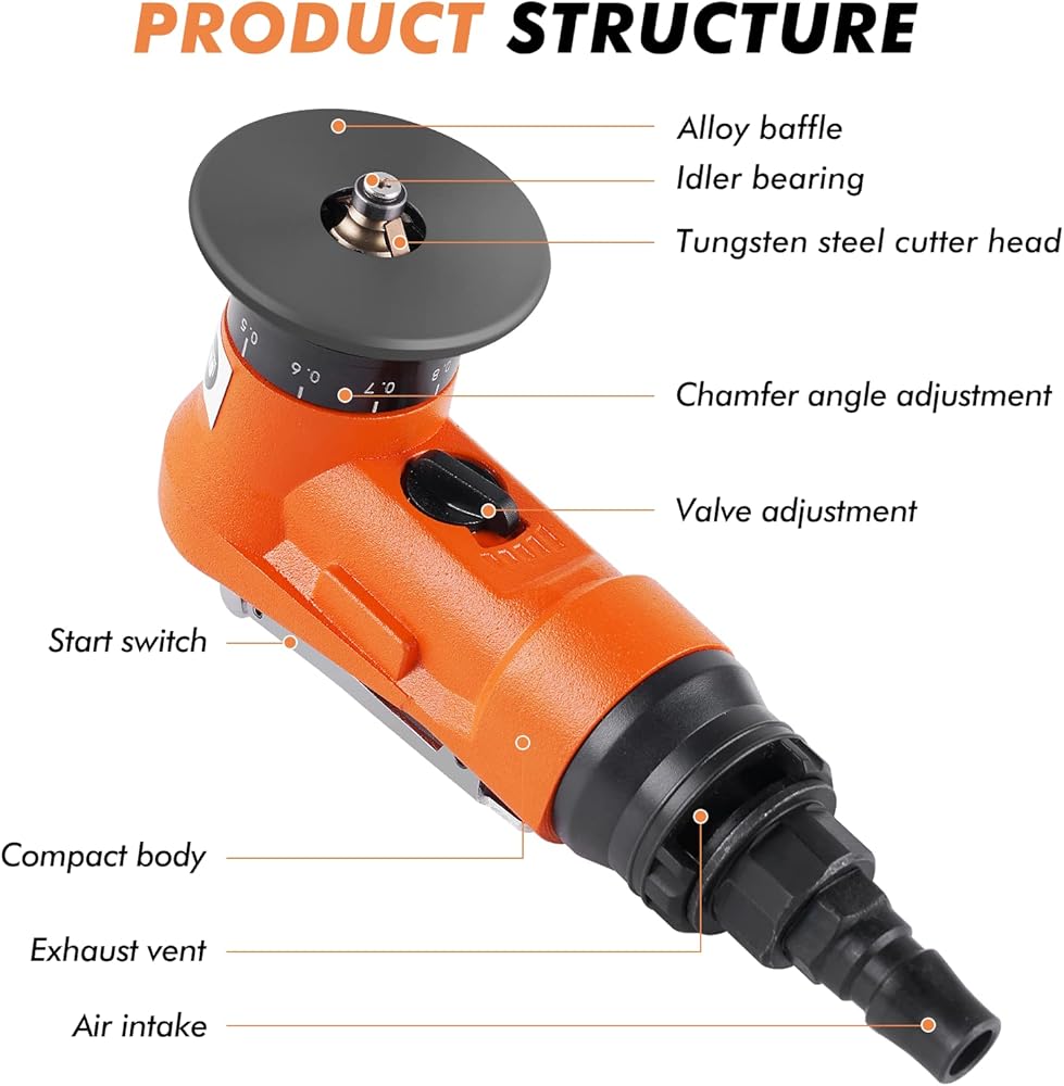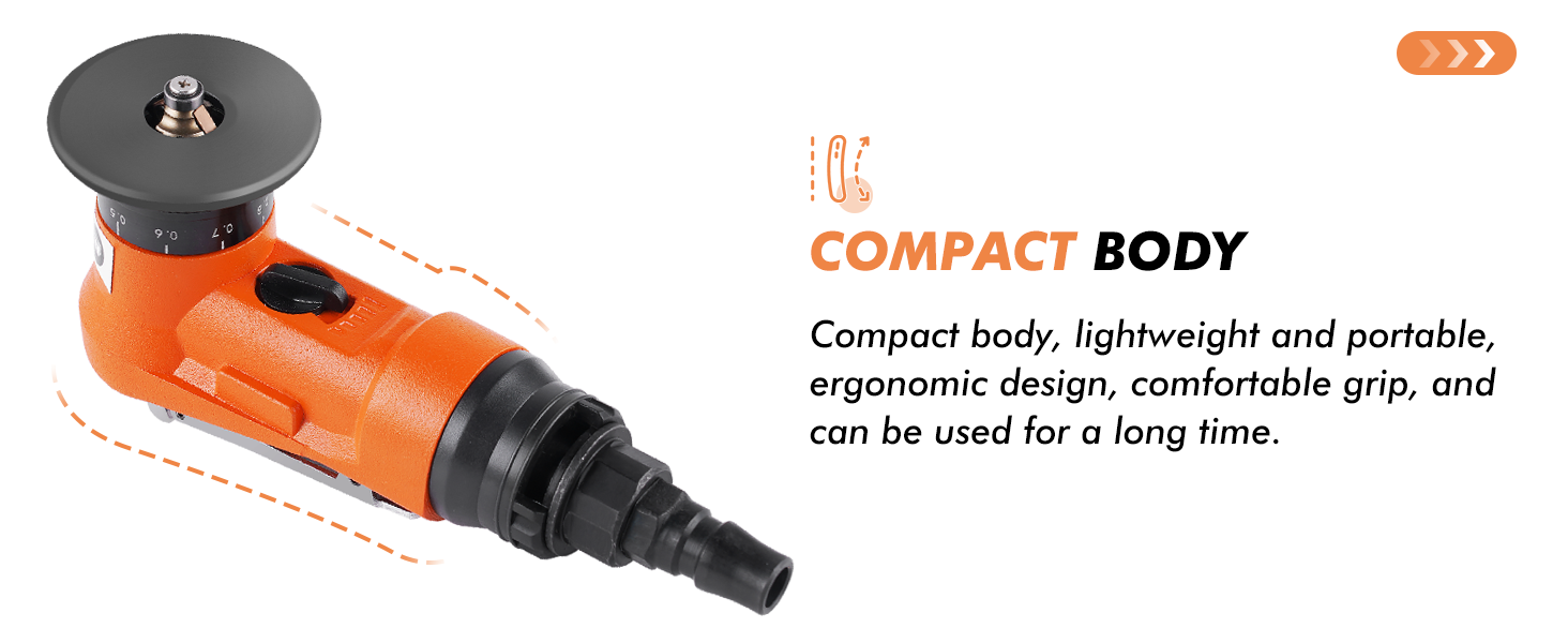 تم تجهيز آلة الشطب الهوائية بمنفذ عادم دوار 360 درجة، والذي يمكن أن يستنفد بسرعة، ويقلل من درجة حرارة الماكينة ويجعلها أكثر أمانًا في الاستخدام.