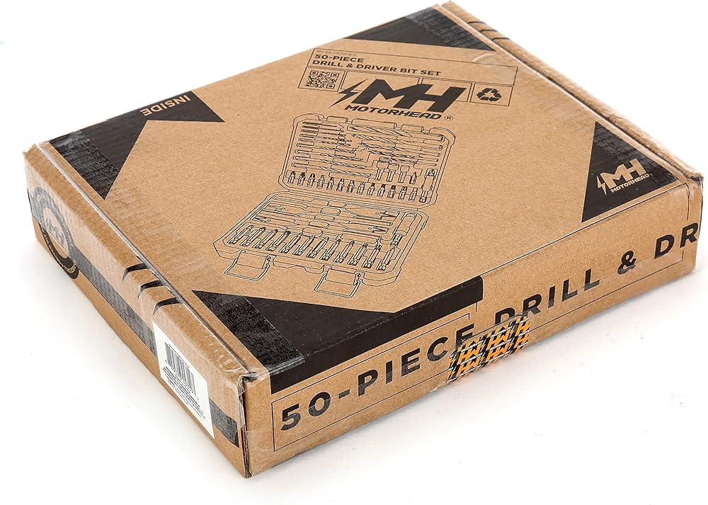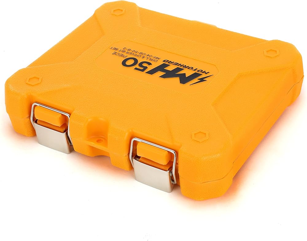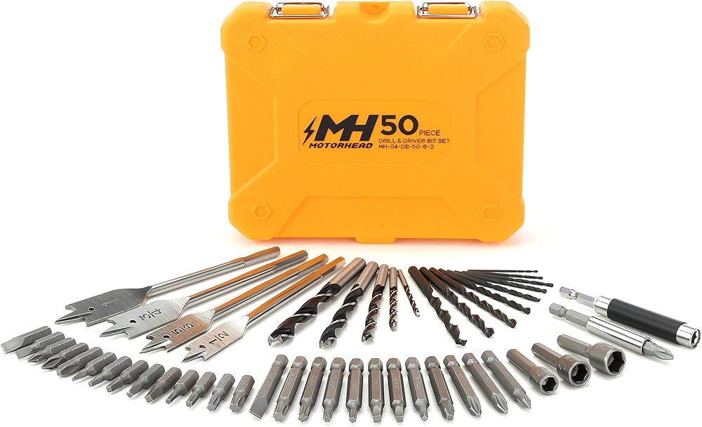 مجموعة مفك براغي ولقم مثقاب 50 قطعة من موتورهيد، أعمال النجارة، رؤوس مجداف مسطحة، نقطة طيار، أكسيد أسود، مفكات صواميل مقبس 1/4 فيليبس، فتحة، مربعة، توركس، دليل مفك براغي مغناطيسي