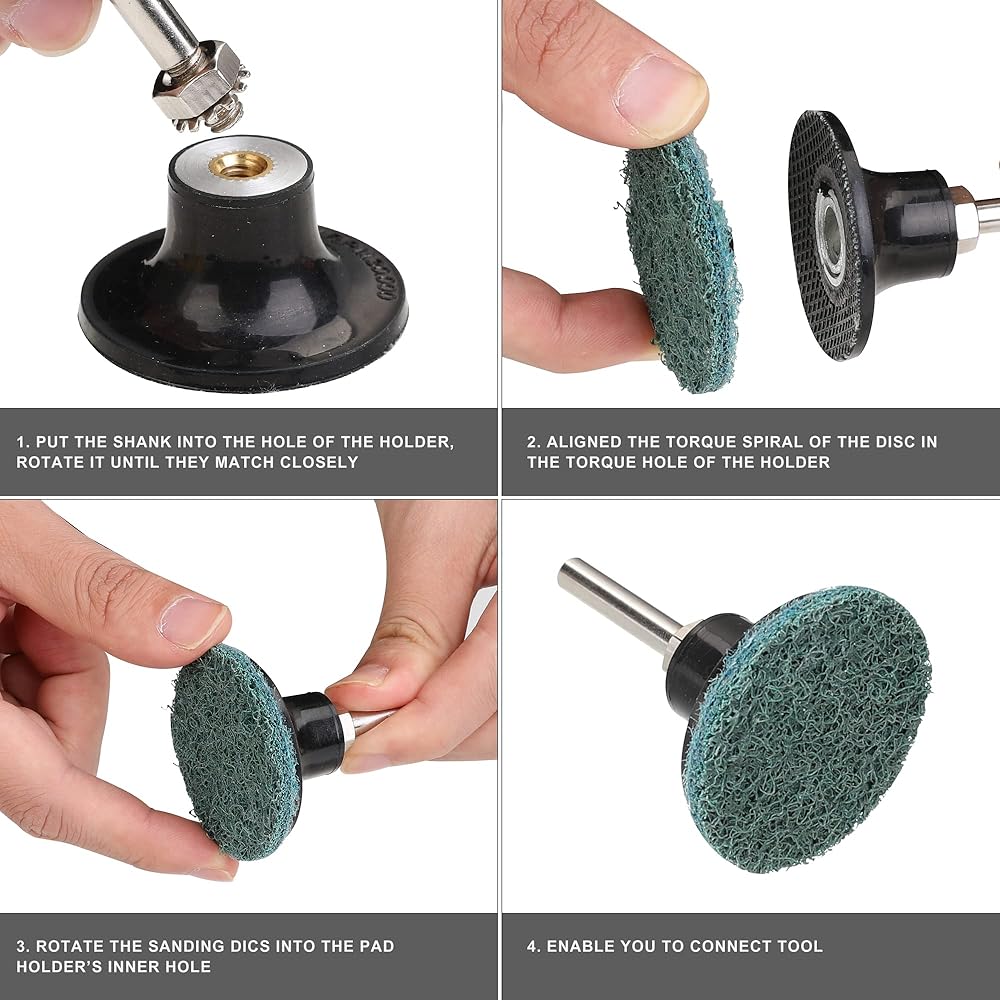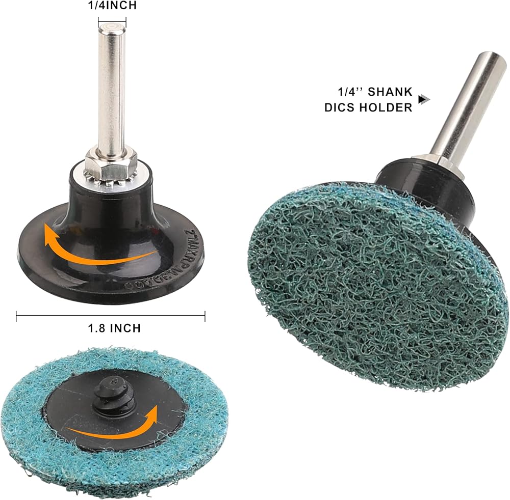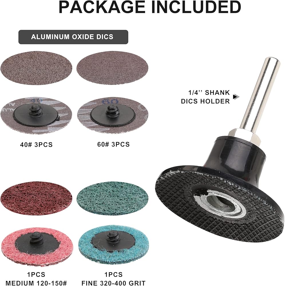 PROFESSIONAL TOOLS: JOROY sanding discs set including 1pcs 1/4'' Holder, 6 pcs aluminum oxide discs(40#/60#), 2 pcs non-woven discs (medium/fine), which makes them an excellent choice for any polishing or conditioning surfaces.