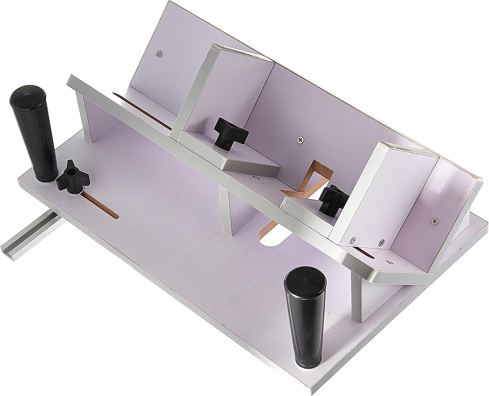 اصنع مفاصل قوية ومزخرفة بأمان على إطارات الصور وصناديق المجوهرات والمرطبات وما إلى ذلك. يُعد مفصل الجبيرة أحد أفضل الطرق لتعزيز المفصل المتري بسبب زيادة منطقة سطح الغراء. بالإضافة إلى إضافة الدعم، يمكن للجبائر أن تضيف مظهرًا راقيًا إلى مشروعك عندما تخرجها من أنواع الخشب ذات الألوان المتباينة. خشب ليفي متوسط الكثافة بسمك 1/2 بوصة ومغطى بالميلامين مع شريط قياس من الألومنيوم بطول 14-1/2 بوصة يناسب أي فتحة قياسية بعرض 3/4 بوصة. يمكن تعديل موضع شريط ميتر المصنوع من الألومنيوم باستخدام فتحات التثبيت الموجودة في القاعدة وسيعمل مع الطاولات التي تحتوي على فتحة ميتر 5-1/2 بوصة إلى 8-1/4 بوصة من منتصف فتحة اللقمة في سطح طاولة الراوتر. القاعدة بعرض 15-1/2 بوصة وعمق 10 بوصة. سيقان دعم قابلان للتعديل للتساطير بين أو تثبيت مشروعك إليه، عند قطع الشظايا عبر الزوايا. مقابض عمودية للسماح لك بحمل ريشة التوجيه بأمان على طاولة التوجيه أثناء الاستخدام، مما يحافظ على يديك بعيدًا عن شفرات القطع الحادة في رأس الراوتر