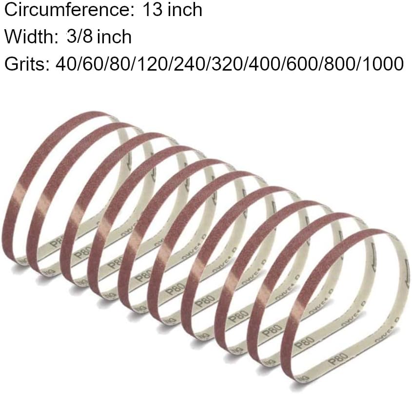 أحزمة صنفرة مقاس 1/2 × 12 بوصة، 2 لكل منها 40/60/80/120/240/320/400/600/800/1000 حبيبة، أداة صنفرة الحزام للأعمال الخشبية، تلميع المعادن، أحزمة صنفرة أكسيد الألومنيوم (20 عبوة)