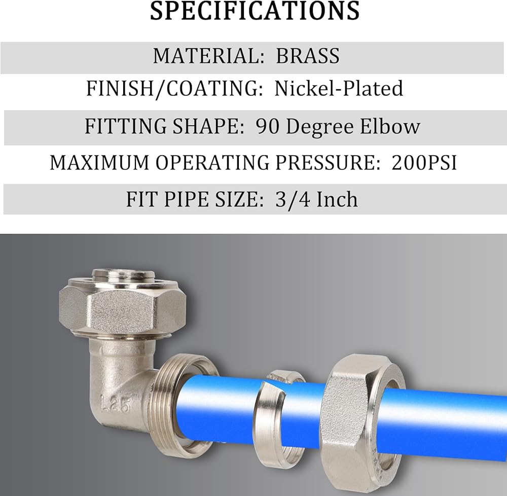 • Exceptional Durability: Crafted from nickel-plated brass, our 3/4 inch elbow fitting is engineered to endure the harshest conditions, ensuring it remains robust and resistant to corrosion for an extended lifespan.