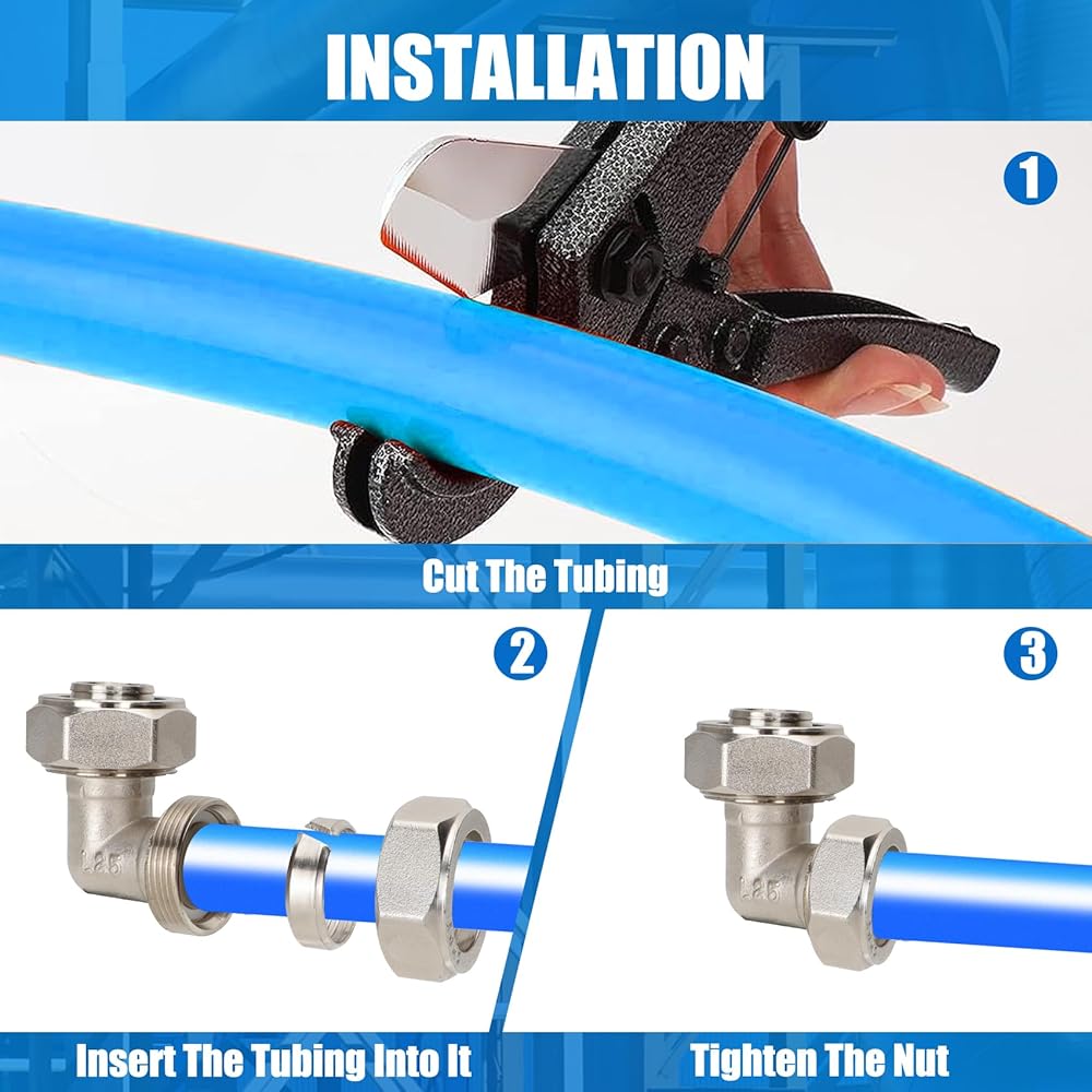• Simplified Setup: Say goodbye to messy adhesives, soldering, or complex crimping techniques. Our O-ring compression style fitting streamlines the installation process. Just prepare your tubing, slide on the fitting, and secure it effortlessly with a wrench for a secure, leak-free connection.