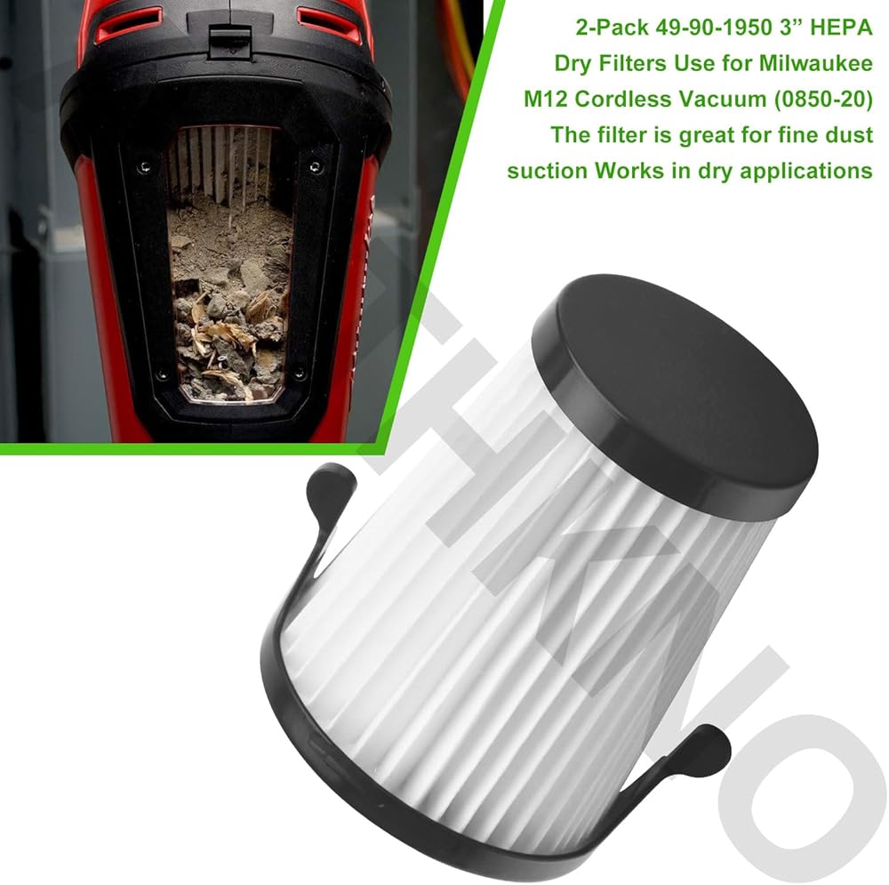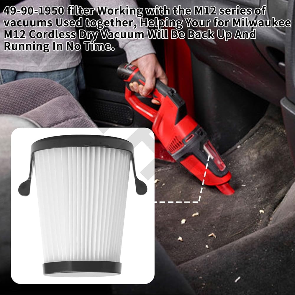 ✅ 49-90-1950 filter Working with the M12 series of vacuums Used together, Helping Your for Milwaukee M12 Cordless Dry Vacuum Will Be Back Up And Running In No Time. High-quality 3” HEPA Dry Filters to optimize your cleaning experience. Remove debris from the workshop, basement or garage
