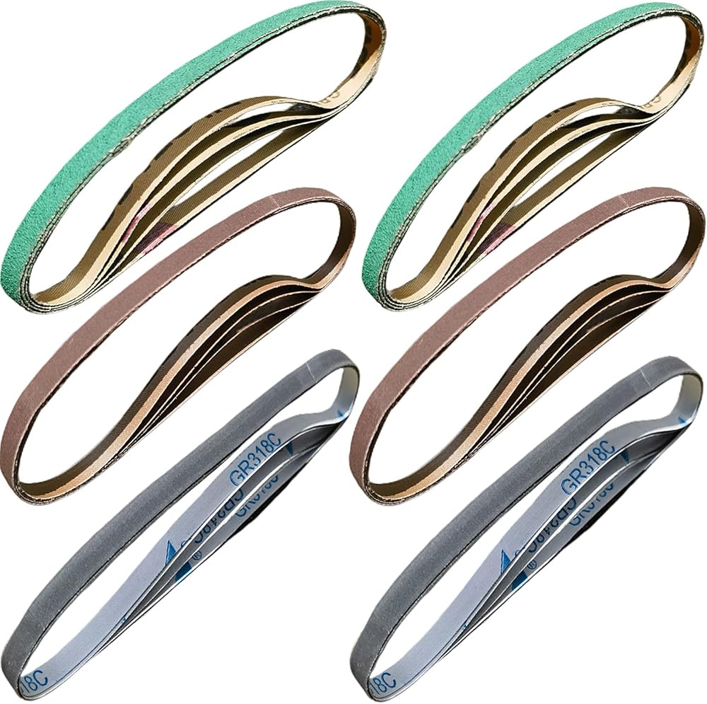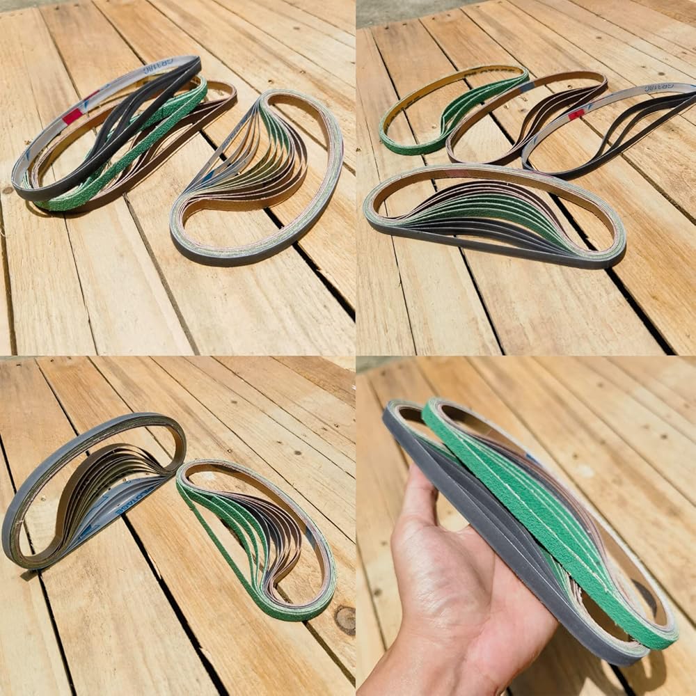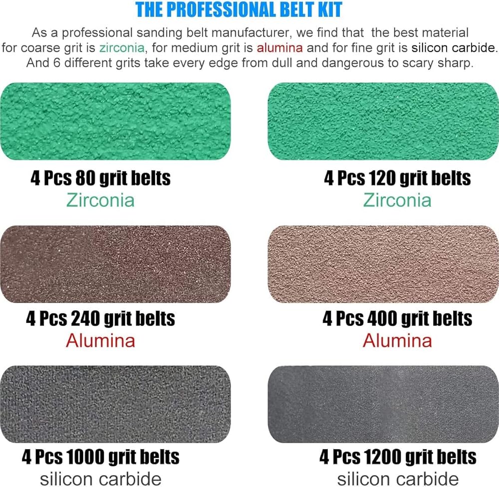 24 قطعة 1/2 انش × 12 انش، تتضمن 4 قطع من أحزمة زركونيا 80 حبيبة، 4 قطع من أحزمة الزركونيا 120 حبيبة، 4 قطع من أحزمة الالومينا 240 حبيبة، 4 قطع من أحزمة الالومينا 400 حبيبة، 4 قطع من كربيد السيليكون 1000 حبيبة أحزمة ، 4 قطع أحزمة كربيد السيليكون 1200 حبيبة