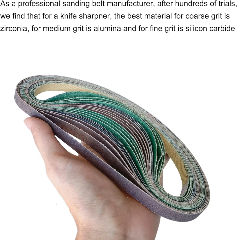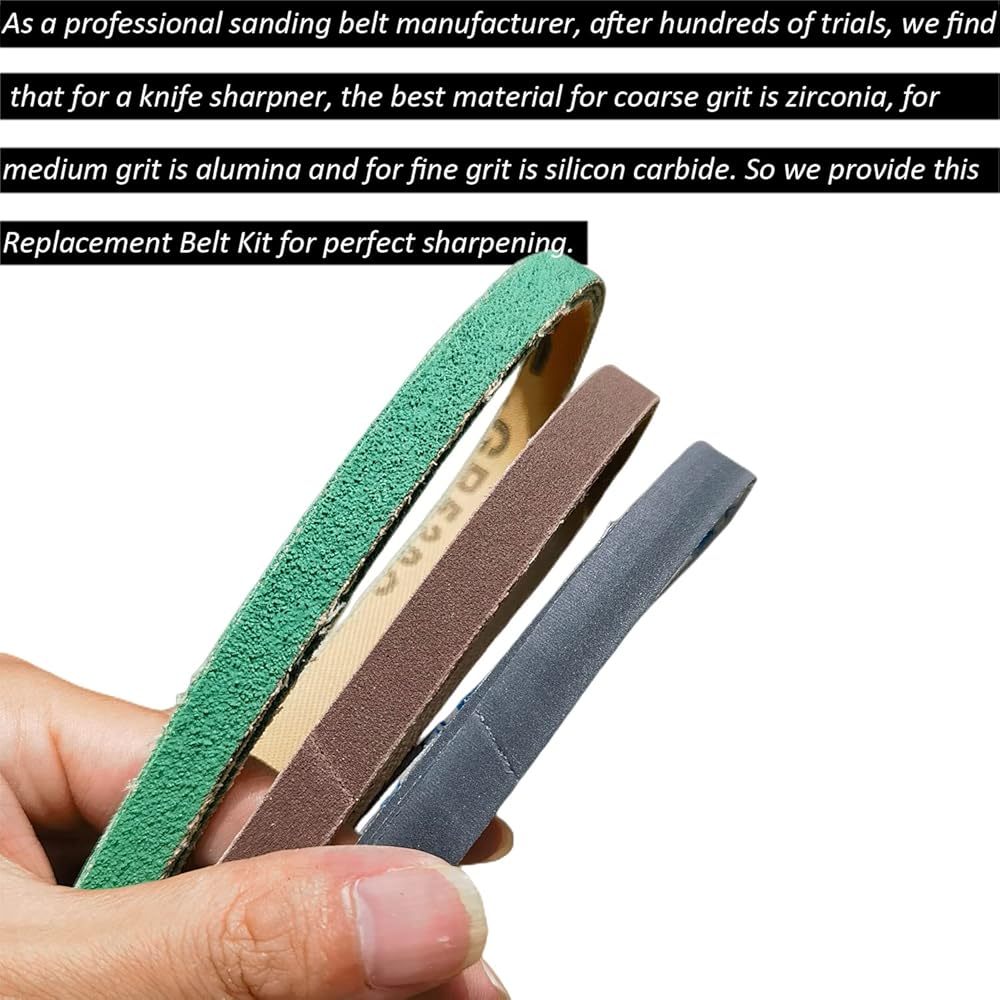بصفتنا شركة مصنعة احترافية لأحزمة الصنفرة بعد مئات التجارب، نجد أنه بالنسبة لشحذ السكاكين، فإن أفضل مادة للحبيبات الخشنة هي الزركونيا، أما الحبيبات المتوسطة فهي الألومينا وكربيد السيليكون للحبيبات الدقيقة. لذلك نقدم مجموعة الحزام البديل هذه لشحذ مثالي.