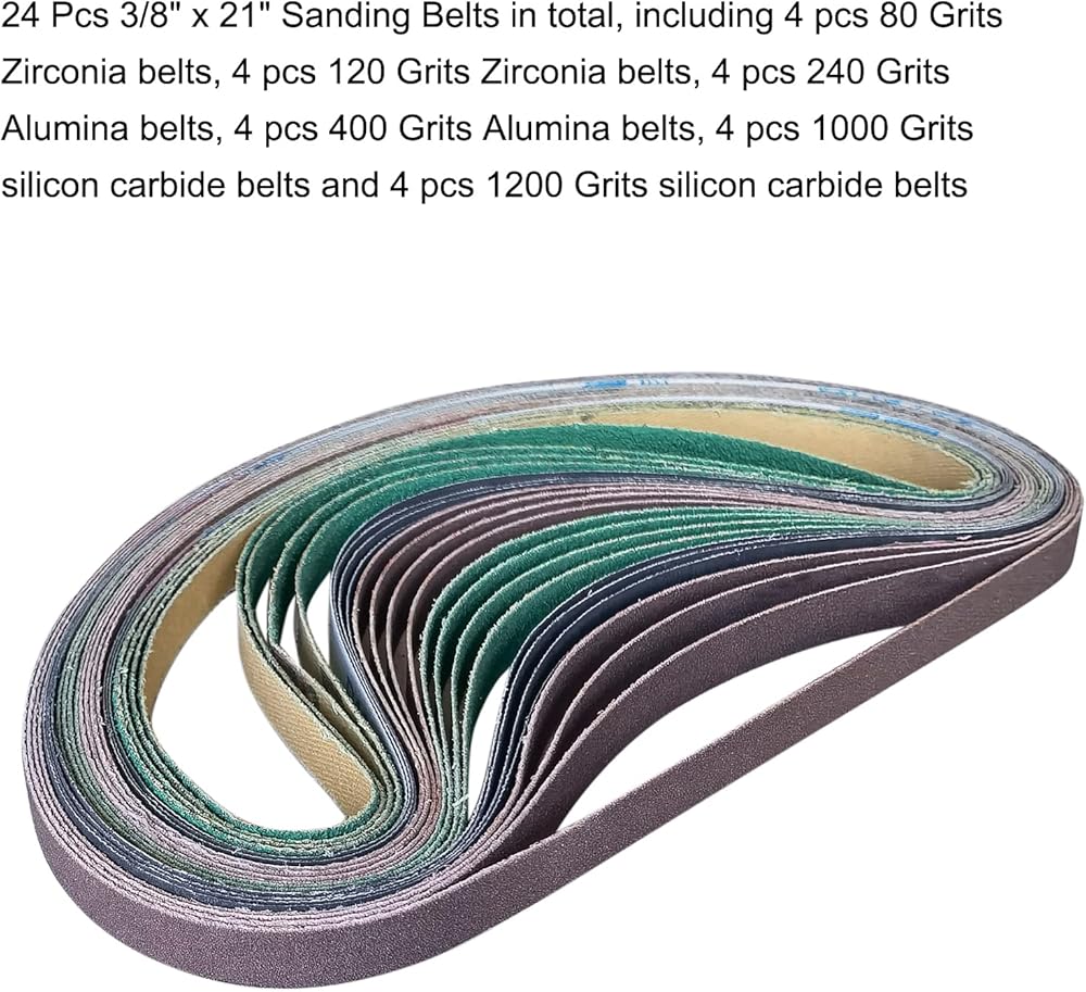 24 حزمة 3/8 انش × 21 انش حزام صنفرة بديل لماكيتا XSB01Z، 9032، 4 قطع من كل حزام صنفرة 80/120/240/400/1000/1200 حبيبة