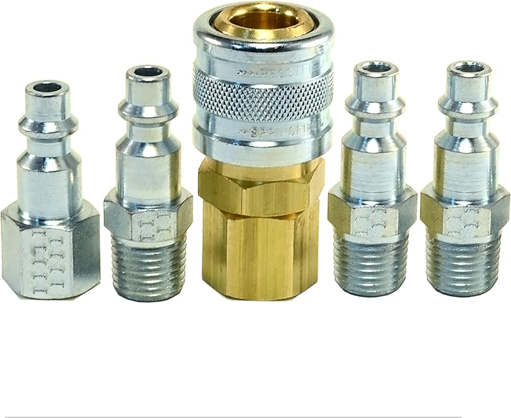 تركيبات هواء شديدة التحمل، قارنة توصيل هواء صناعية ومجموعة قابس، مجموعة توصيل سريعة، حجم جسم 1/4 بوصة، حجم خيط NPT 1/4 بوصة، صناعة أمريكية (5 قطع - قارنة توصيل ومجموعة قابس)