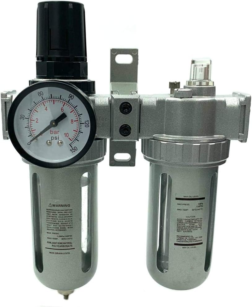 فلتر هواء مضغوط مدمج ان بي تي 1/2 انش مع منظم ومزيت. يرجى التأكد من القياس لأن هذا هو 1/2 انش ان بي تي.