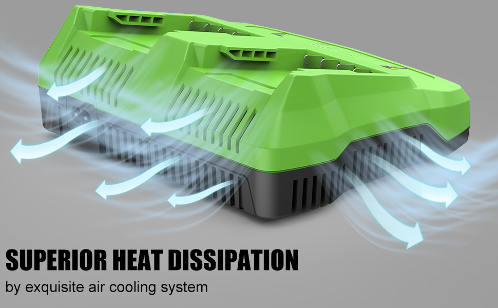 - Cooling channel on the charger helps cool down the heat during charging, which also extends battery cycling times.