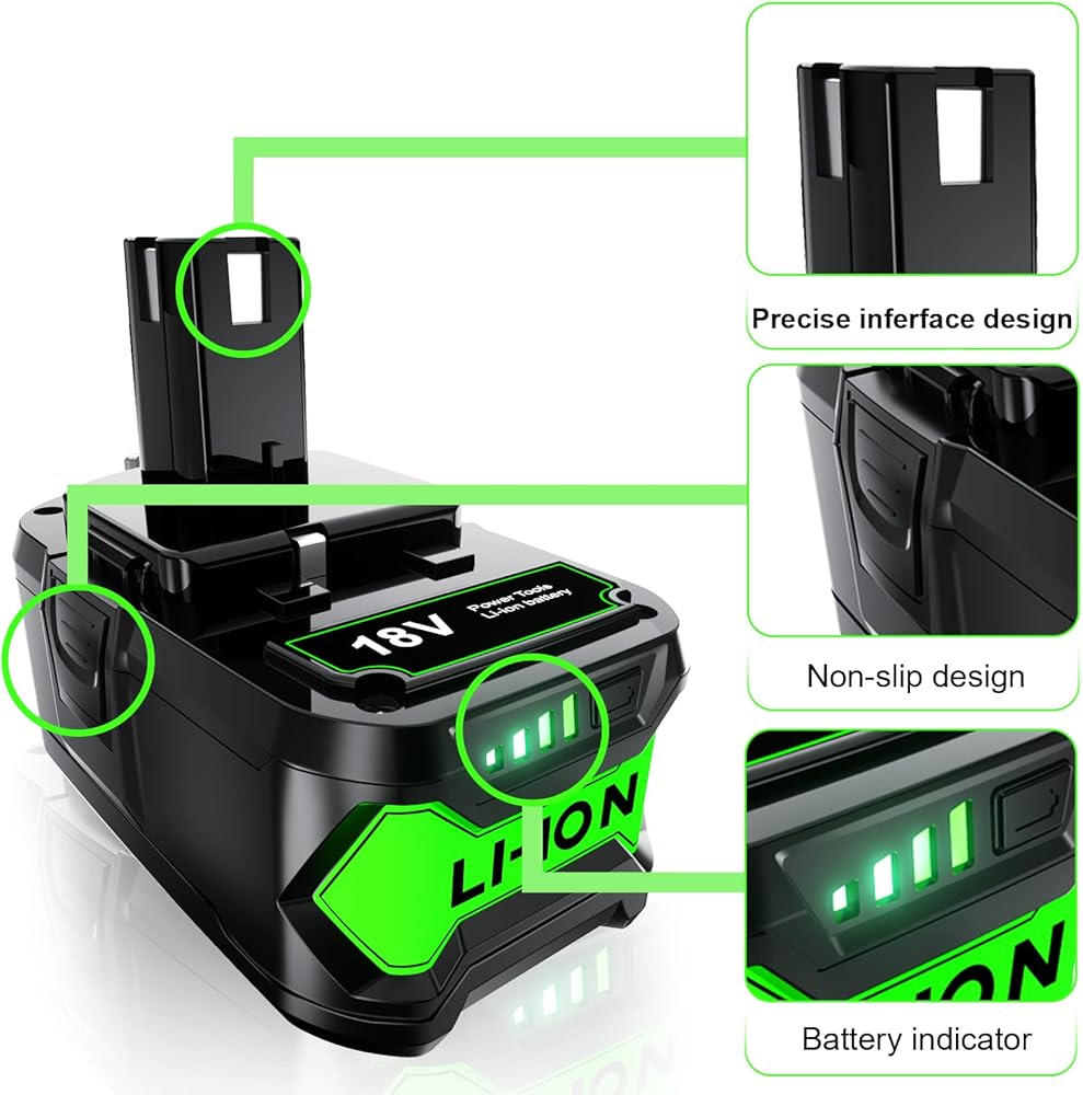 🔋التوافق: متوافق مع Ryobi P102، P103، P104، P105، P107، P108، P109 ويناسب جميع أدوات الطاقة اللاسلكية لنظام Ryobi 18V ONE+. (ملاحظة: غير مناسب لمنشار ryobi اللاسلكي P551، راديو ryobi 18 فولت، المصباح على سبيل المثال، ryobi P742 ryobi P746)
