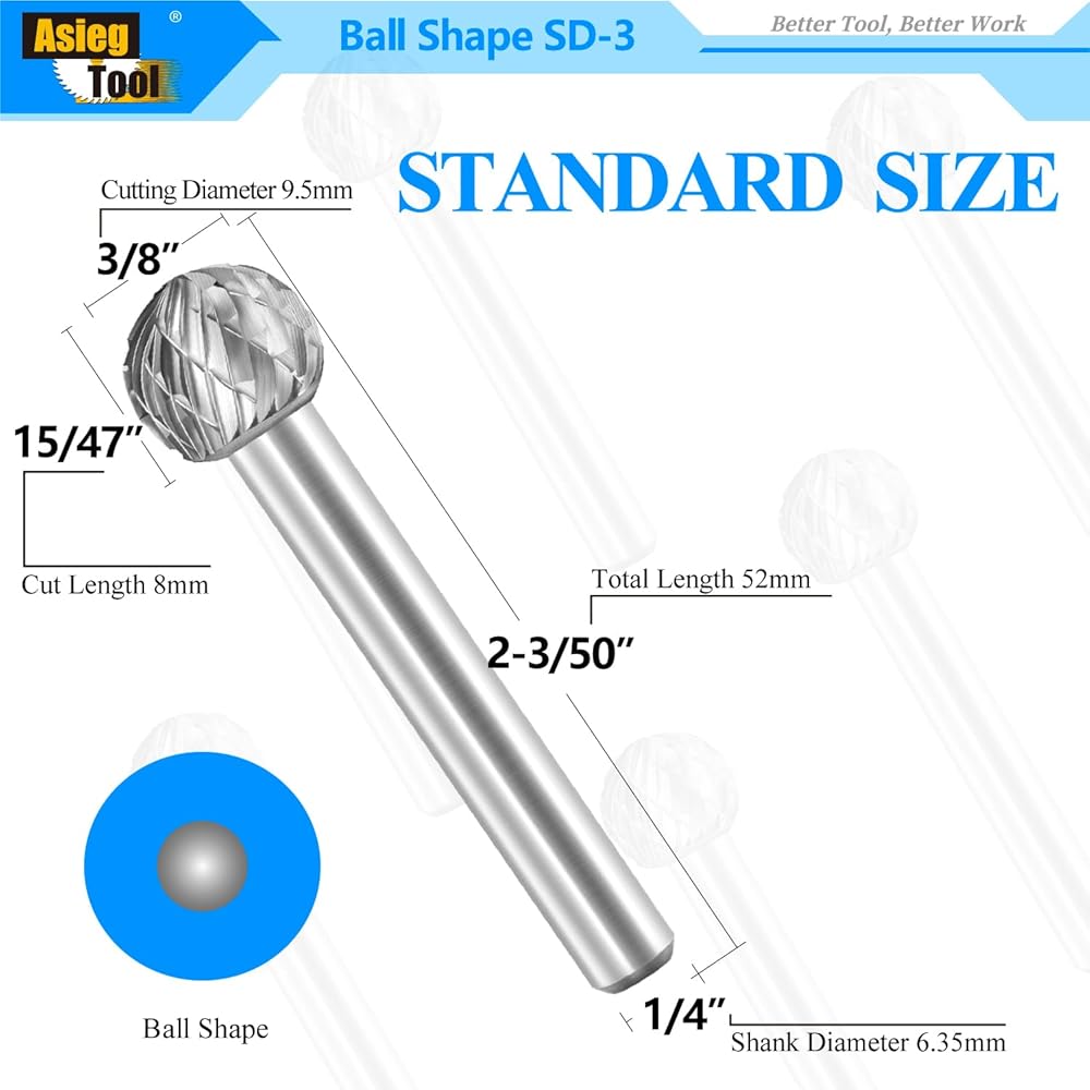 الشكل: شكل كرة مزدوجة القطع SD-3L6 ، الحجم: 6 5/16 بوصة الطول الكلي ، 1/4 بوصة قطر الساق ، 3/8 بوصة قطرها ، 15/47 بوصة طول القطع