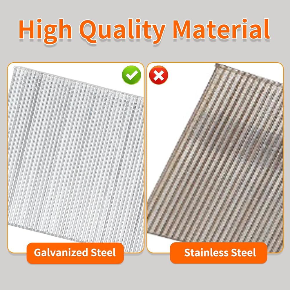 【Good Material】 Crafted from galvanized steel, these 2-inch 18ga brad nails exhibit exceptional durability and resistance to corrosion. The galvanization process enhances their longevity by forming a protective zinc coating that shields the nails from rust and other environmental factors.