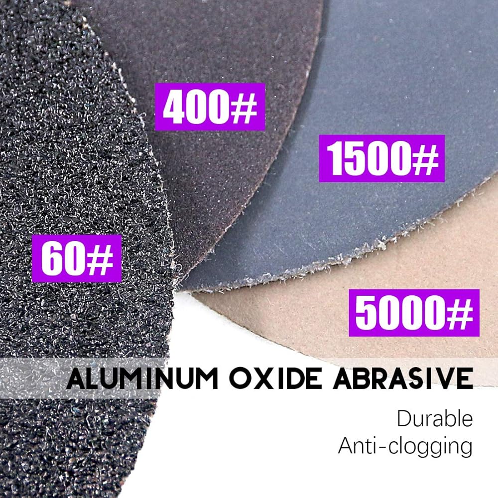 سوبيت 43 قطعة من ورق اكسيد الالومنيوم الكاشط الجاف والرطب للحبيبات 60 400 1500 5000 مجموعة متنوعة مع وسادة دعم 1/4 انش ووسادة عازلة من الفوم الناعم لقرص الصنفرة بشريط فيلكرو
