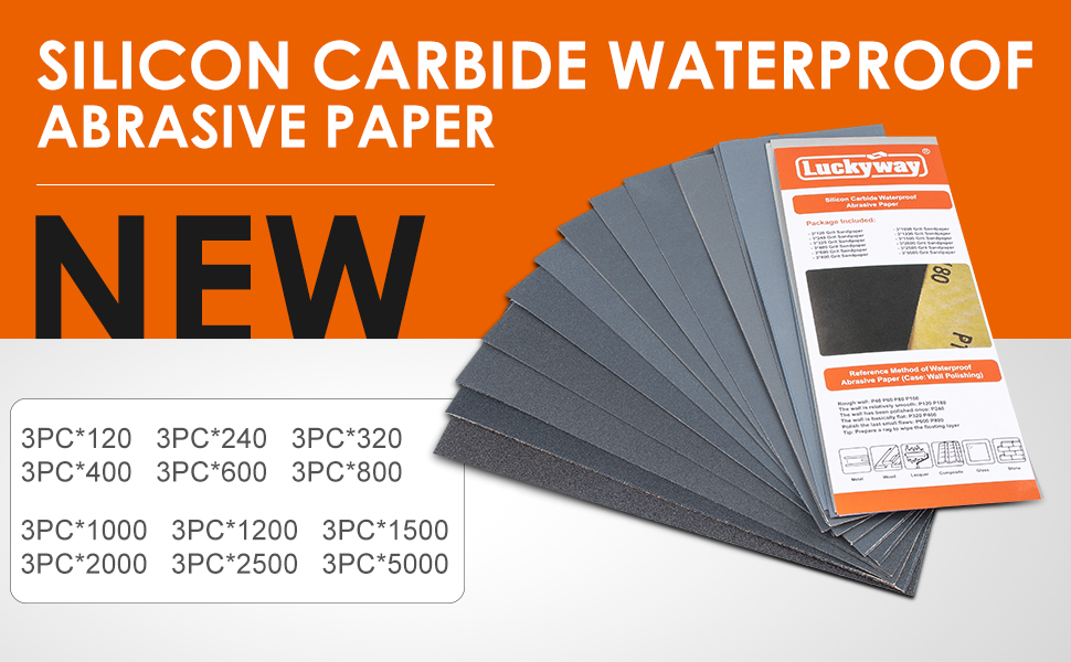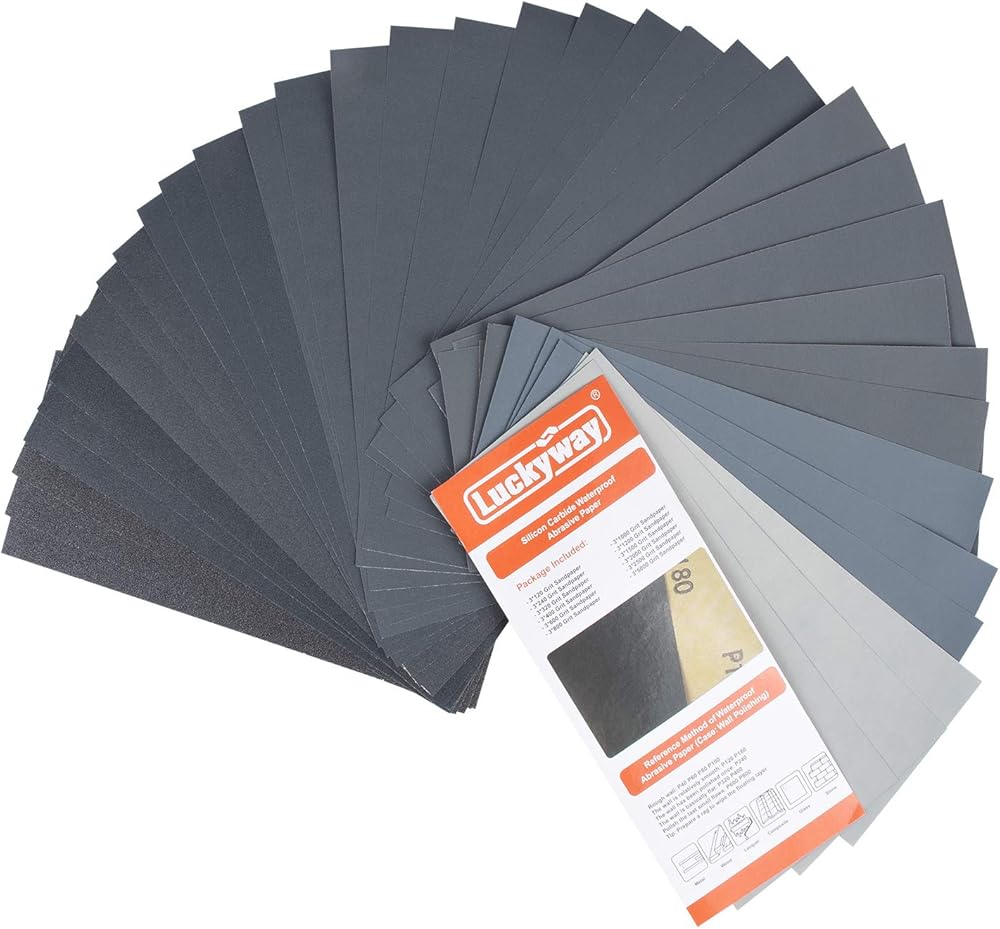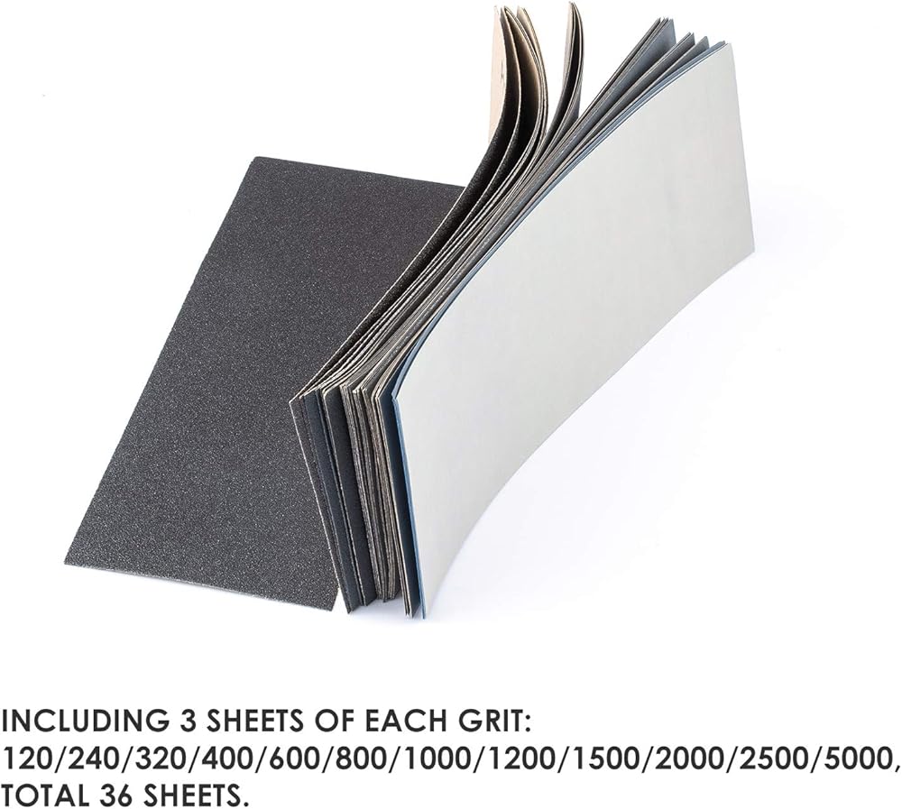 Luckyway 36 ورقة، 9 × 3.6 بوصة، 120 إلى 5000 ورق صنفرة متنوع لتشطيب الأثاث الخشبي، الصنفرة المعدنية وتلميع السيارات، الصنفرة الجافة أو الرطبة