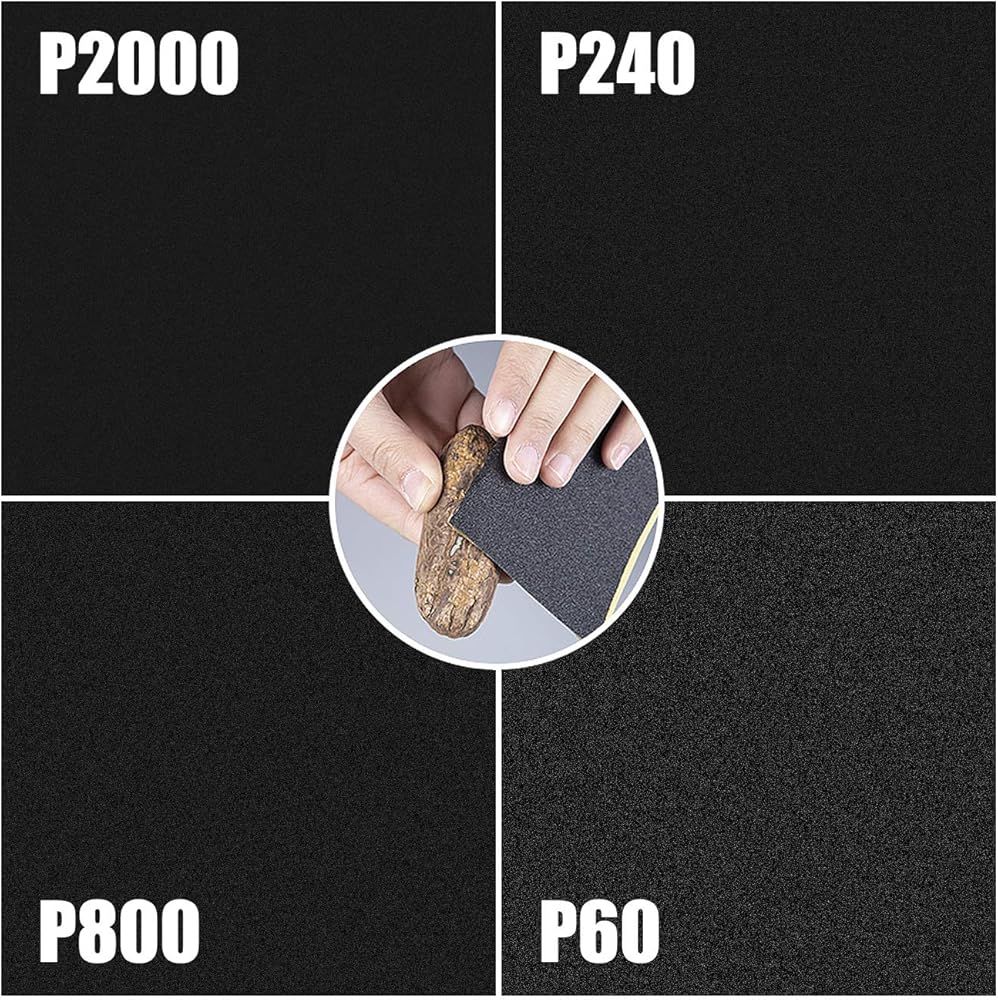 • كيفية اختيار ورق الصنفرة؟ - من 120 حبة >>> إلى 6000 حبة. كلما كانت الحبيبات أصغر، كان السطح أكثر خشونة مناسب للطحن والتقشير >>> كلما كانت الحبيبات أكبر، كان السطح أكثر نعومة ومناسبًا للطحن والتلميع الناعم