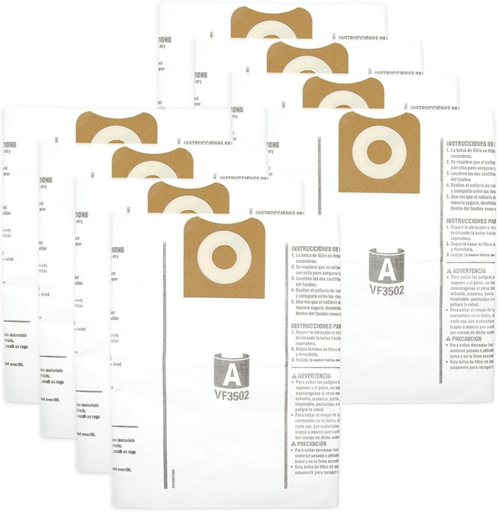 لا يناسب مكنسة 12 جالون WD12450 وWD12460 وWD1250 وWD12780 وWD1280 و16 جالون مكنسة WD16350 وWD16360 وWD1637 وWD16650 وWD17351. هذه الحقائب تناسب فقط الفراغات التي تحتوي على فوهة، ولا تناسب الفراغات ذات وصلة الخرطوم في الأعلى.