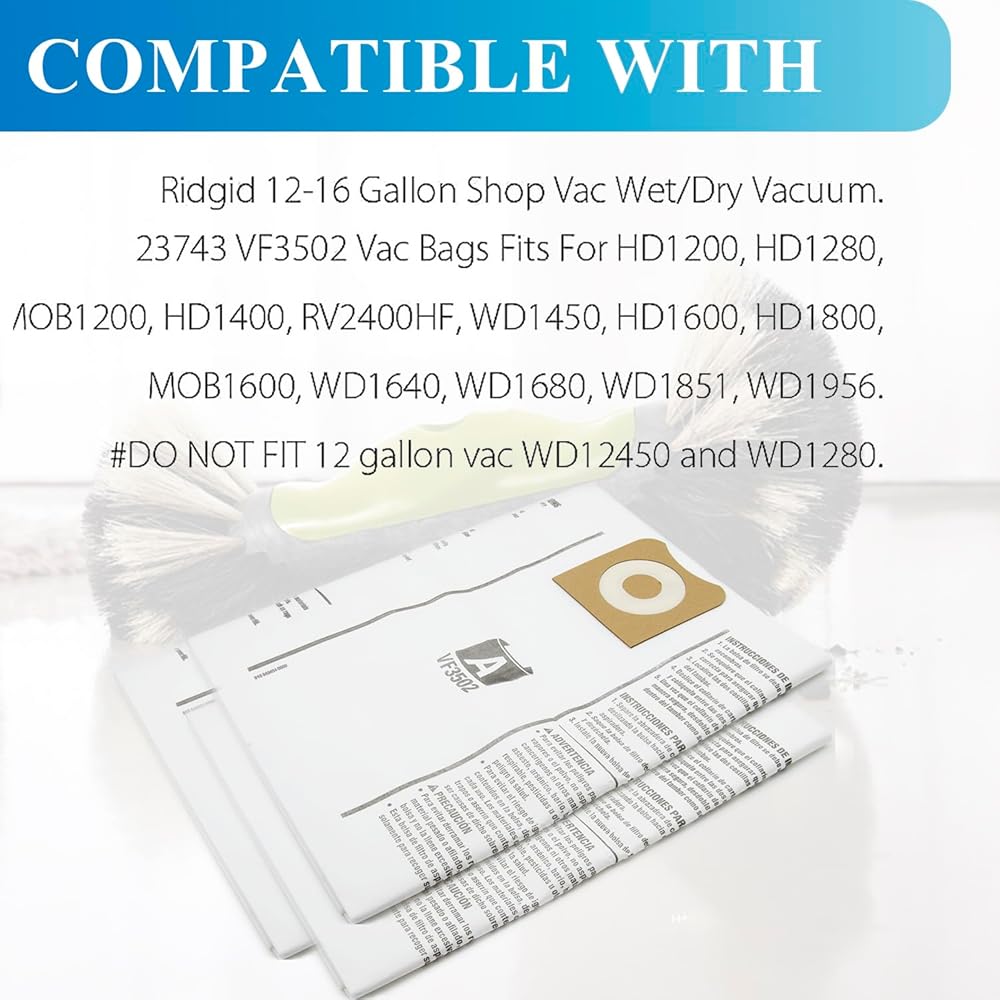 8 عبوات 23743 VF3502 حقائب بديلة متوافقة مع مكانس ريدجيد شوب فاك 12-16 جالون الرطب/الجاف