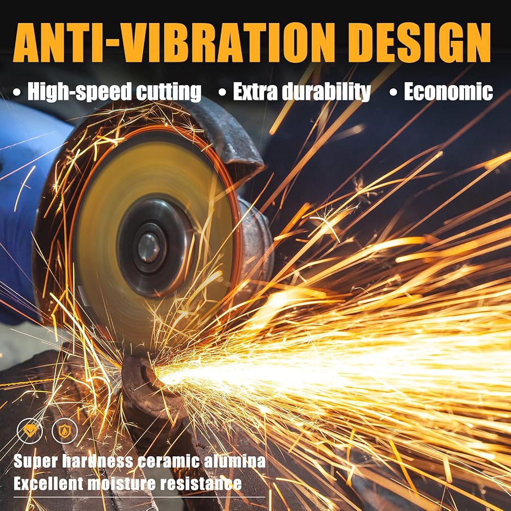 • آلة التكيف - عجلة قطع طاحونة الزاوية متوافقة تمامًا مع جميع المطاحن الزاوية ذات ساق 7/8 بوصة وسرعات تصل إلى 13,300 دورة في الدقيقة و80 متر/الثانية، مما يتيح لأقراص القطع تحقيق الأداء الأمثل في العديد من المطاحن الزاوية.