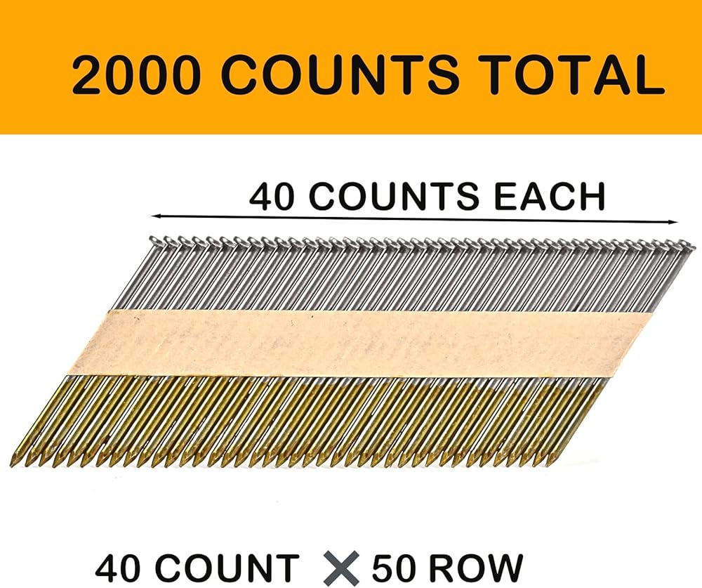 بي اتش توب مسامير تأطير مقاس 3 انش × 0.120 انش، مسامير شريط ورقي ناعم لتأطير الأظافر، مجموعة من 2000 قطعة