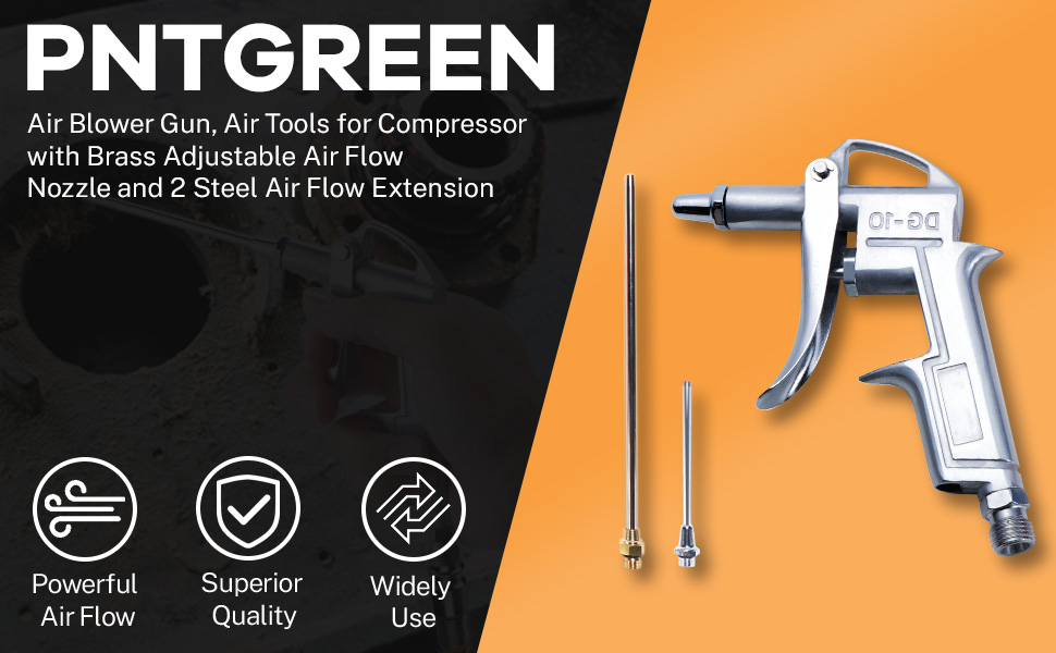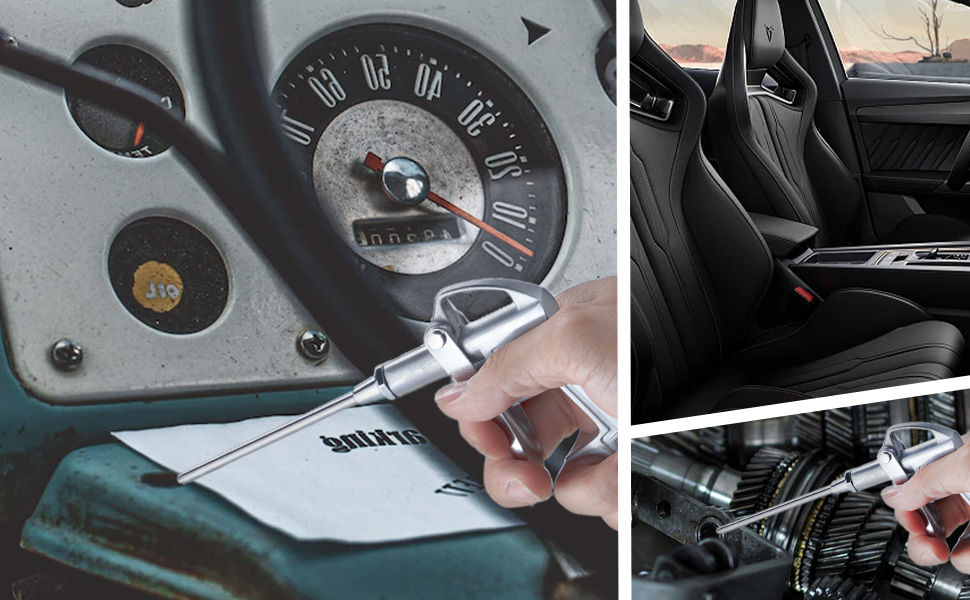 Adjustable Air Flow Nozzle: The blowgun has three adjustable nozzles that make it easy to clean narrow, hard-to-reach crevices, the inside of pipes and machine parts.