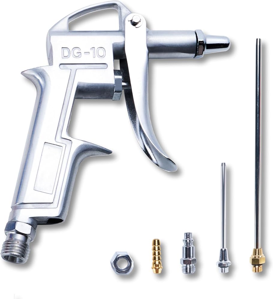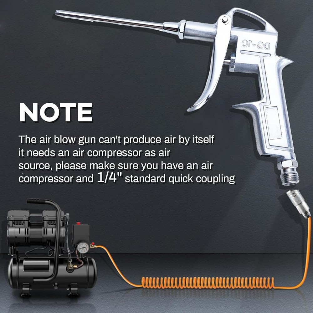 Pneumatic Tools and Accessories: You will receive 1 x blowgun with standard quick coupling, 1 x adjustable airflow short nozzle, 2 x steel airflow extension tubes.