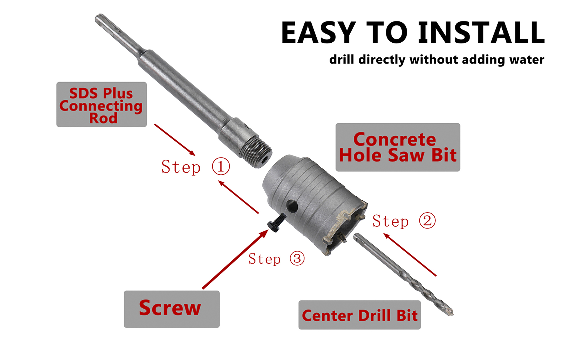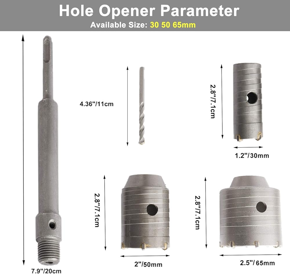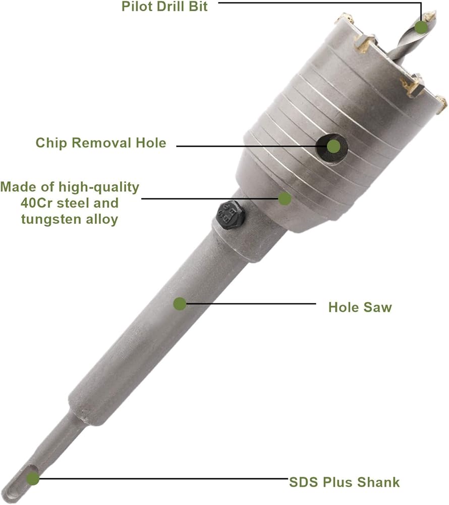 استخدام واسع - مناسب لأي مثقاب مطرقة دوارة تقبل ساق SDS-Plus. رائعة لحفر الجدار الإسمنت والحجر والطوب والاسمنت والبناء والكتلة الهوائية وتركيب تكييف الهواء.