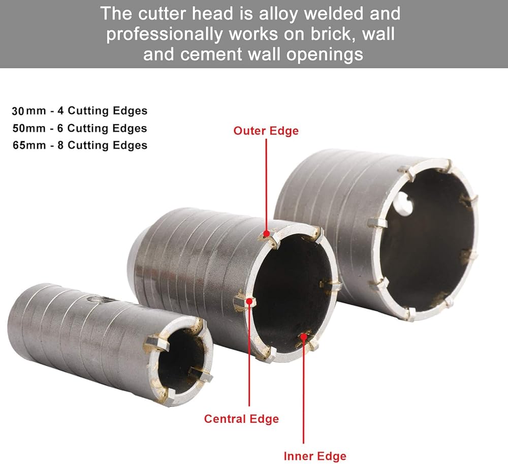 الحجم - 3 مناشير ثقب جدار مختلفة الحجم (65 مم، 50 مم، 30 مم) جاهزة لأقطار القطع المختلفة، خيار الكل في واحد للاستخدام اليومي.