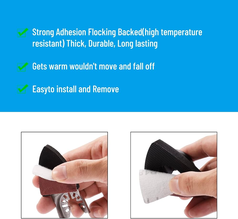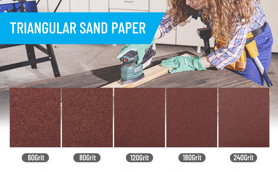 Flocking Backing Sandpaper: These triangle sandpapers are made from aluminium oxide abrasive, strong adhesion flocking backed(high temperature resistant) Thick, Durable, Long lasting and anti-static, great for general grinding, polishing and sanding. The grit is larger, the polish effect is finer.