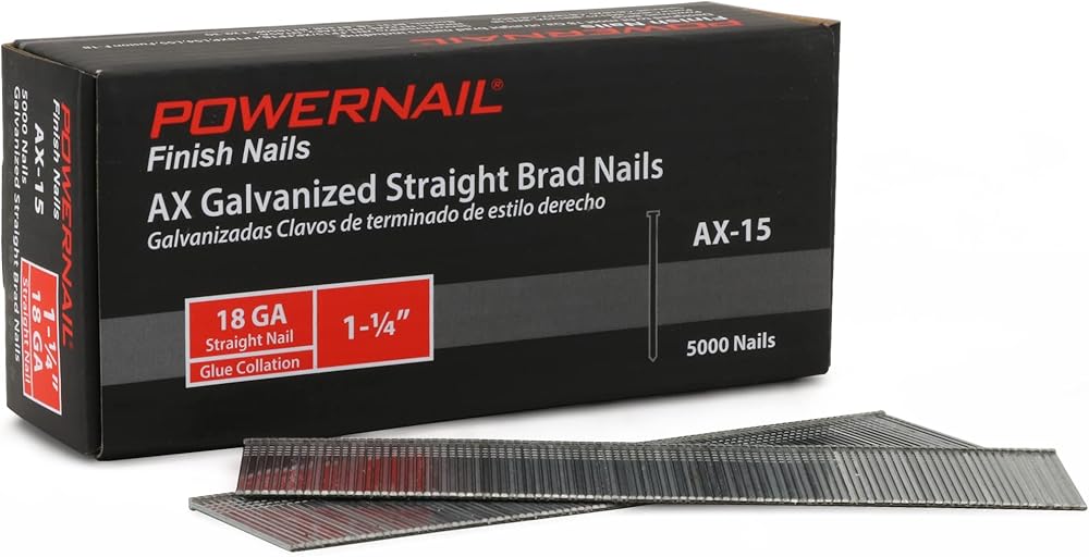 Powernail AX15 18 قياس 1-1/4 بوصة طول مسامير براد مستقيمة مجلفنة (صندوق مكون من 5000)