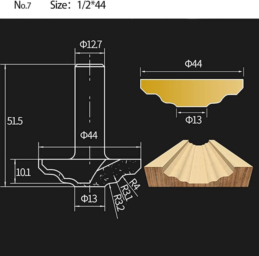 HUHAO 1/2 عرقوب 44 مللي متر قطع قطر راوتر بت درج وخزانة باب أمامي متفوقا لقمة توجيه كلاسيكية
