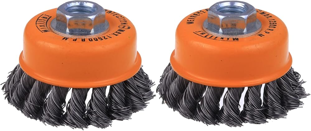 Wide usage: the twisted wire wheel cup brush is suitable for metal, wood and other materials that require a lot of processing, which can remove small amount of splash and slag on flux-cored welds, and well remove some oxide scales on hot-rolled steel.What you get: the package comes with 2 pack 3 inch twisted knotted wire cup brushes, coarse crimped, with 5/8-inch-11 threaded arbor, enough for your daily use and replacement.