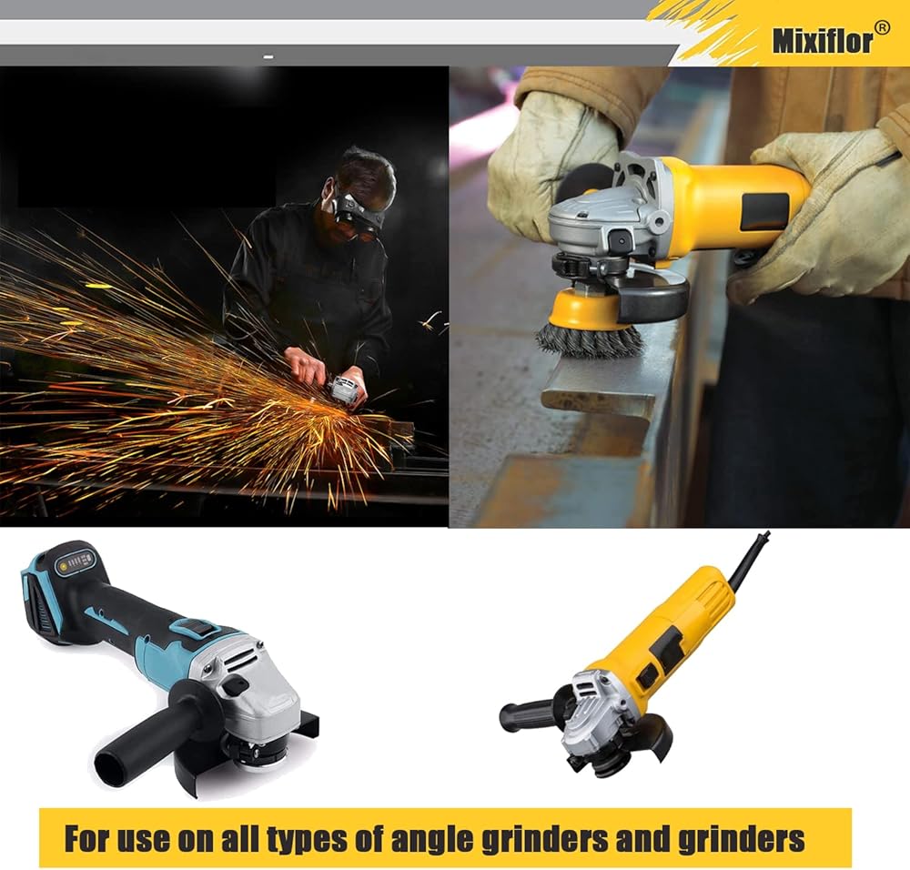 Safer And More Stable: Mixiflor the inner and outer fixed plates of the angle grinder wire cup brush are made of thickened steel, which can effectively avoid wire flying and breakage during heavy work.So as to provide good balance and stability.