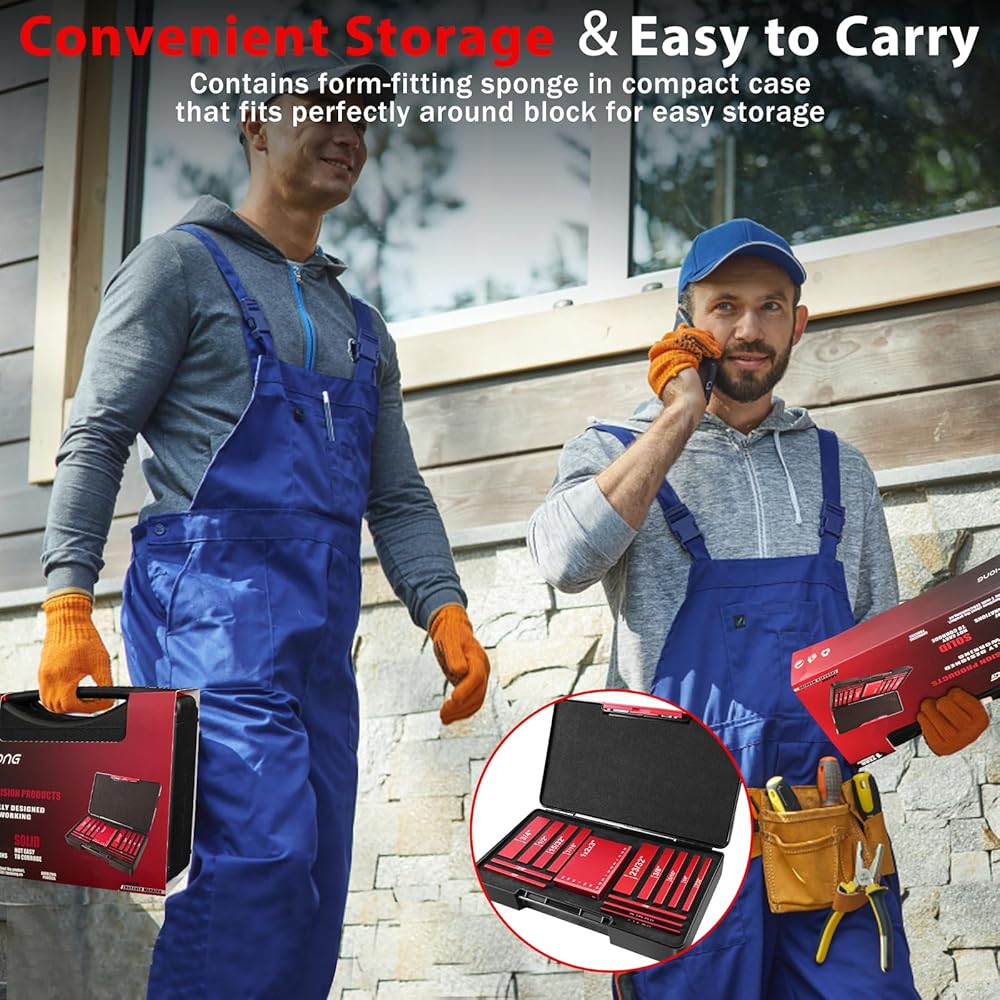 تغليف دقيق: يتم تعبئة المكعبات عالية الدقة الخاصة بنا في صناديق أدوات ABS، ويتم استخدام مادة ايفا بالداخل لضمان حماية كل مكعب من مكعبات النجارة بشكل مثالي. يحتوي صندوق الأدوات على مزلاج قوي، وتصميم التغليف الجميل والفريد الخاص بنا مثالي كهدية لزوجك وأصدقائك وأفراد عائلتك وما إلى ذلك. عمال الخشب أو المتحمسين.