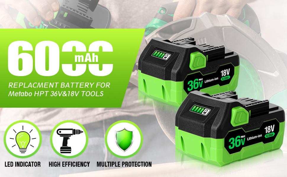 【خلية بطارية مطورة لعام 2023】لا توفر بطارية ليثيوم أيون بقوة 6.0 أمبير في الساعة لبطارية ميتابو HPT 36 فولت/18 فولت أداءً متميزًا ووقت تشغيل أطول فحسب، بل تتميز أيضًا بإدارة ذكية للبطارية وحماية متقدمة للخلايا لمزيد من المتانة وعمر افتراضي طويل.
