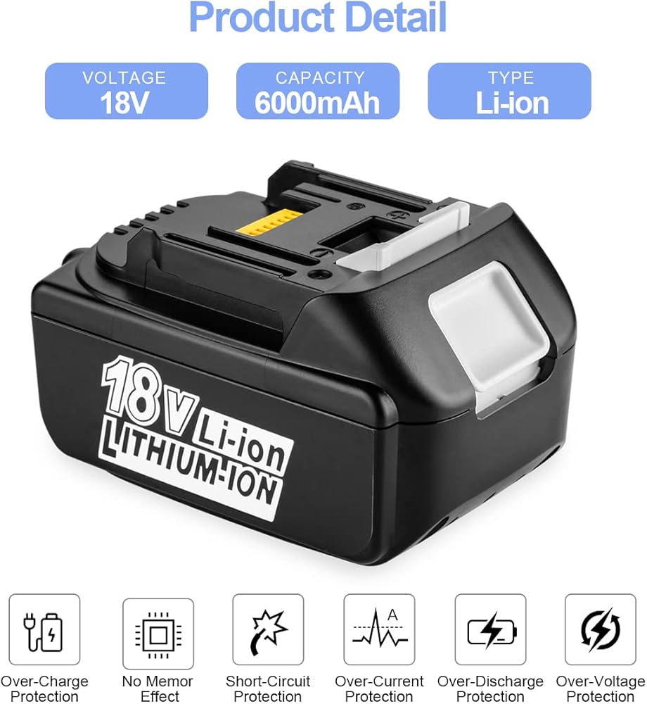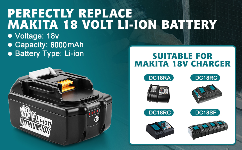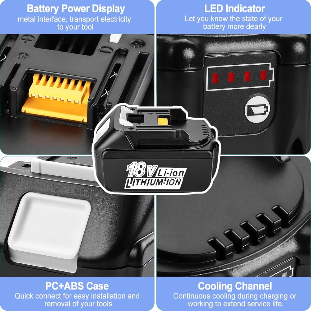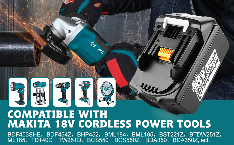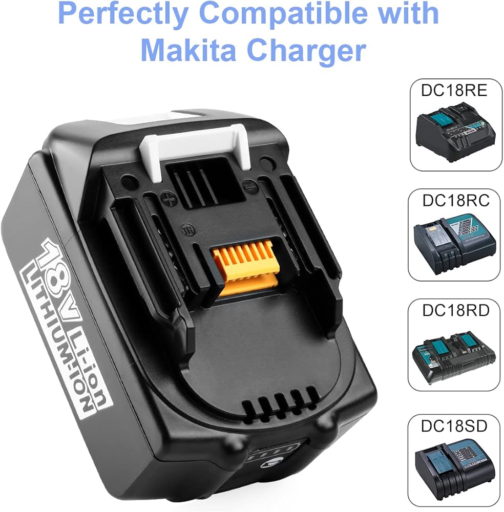 • متوافقة بنسبة 100% مع أدوات الطاقة اللاسلكية الأصلية والشواحن (تعمل مع DC18RD DC18SD)، بطارية بديلة متوافقة مع ماكيتا BL1860B BL1850B، BL1840B، BL1830B، BL1815B، BL1835B، BL1845B، 194205-3B، LXT-400، 194309-1.