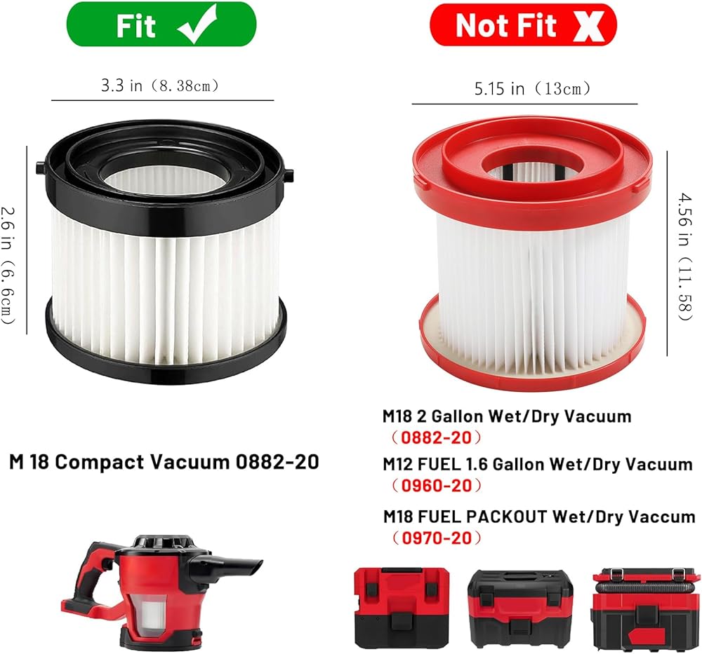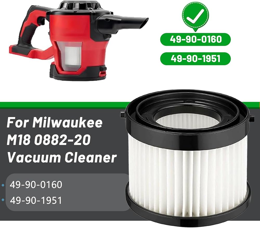 طقم فلتر خرطوشة جاف HEPA مكون من قطعتين متوافق مع مكنسة ميلووكي اللاسلكية 49-90-0160 والجزء 49-90-1951، مناسب للمكنسة الكهربائية المدمجة 0882-20 M18