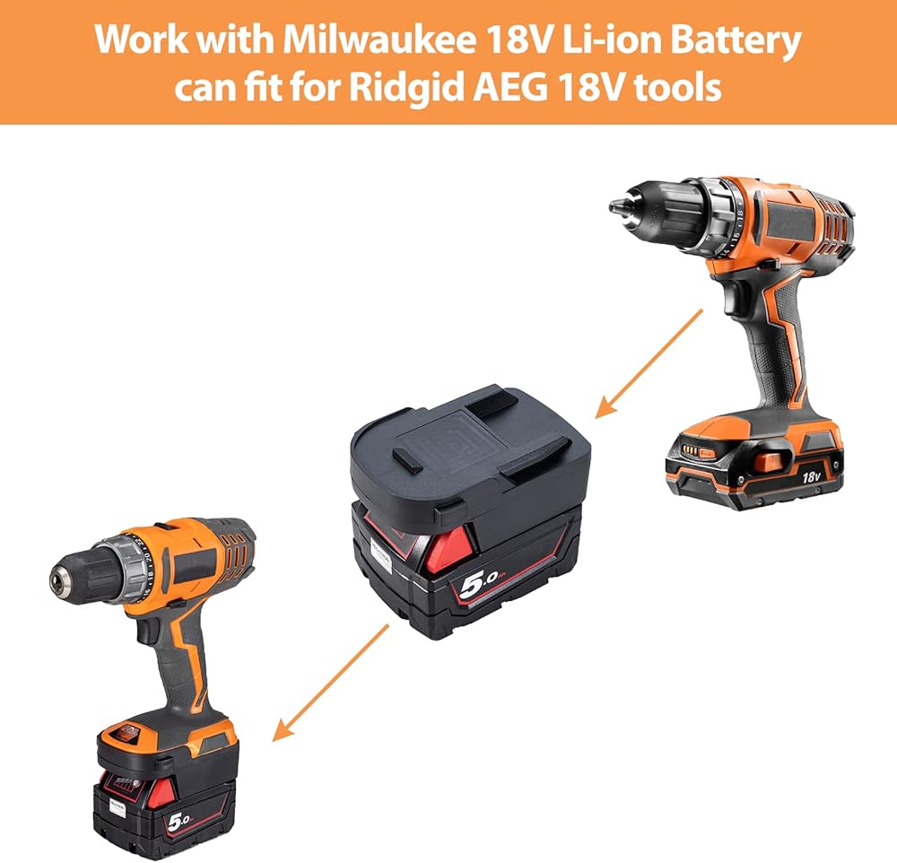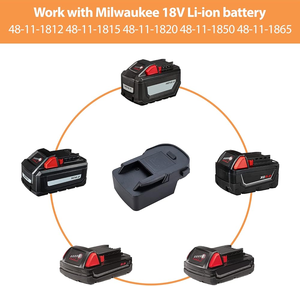 1 、 يعمل هذا المحول مع بطارية ليثيوم أيون ميلووكي M18 18 فولت.