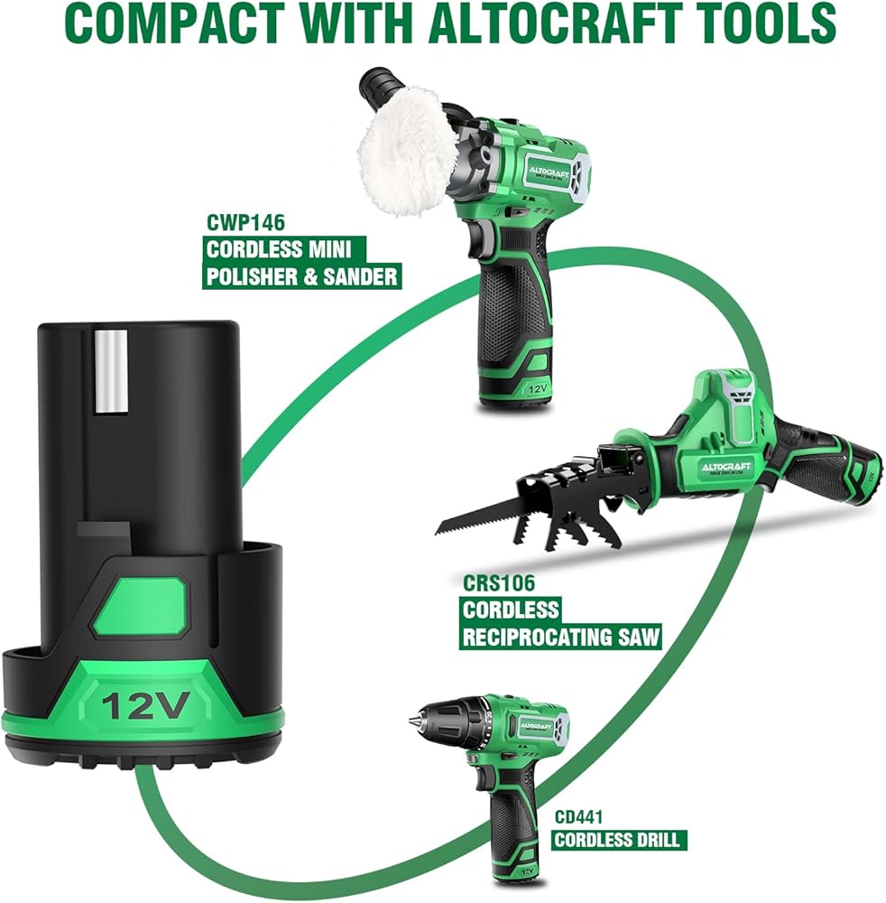 ✅متوافق مع جهاز التلميع الصغير اللاسلكي وآلة الصنفرة ALTOCRAFT 12 فولت طراز CWP146 ومنشار ترددي لاسلكي 12 فولت طراز CRS106. مناسب أيضًا لطراز الحفر اللاسلكي Altocraft 12 فولت CD441.